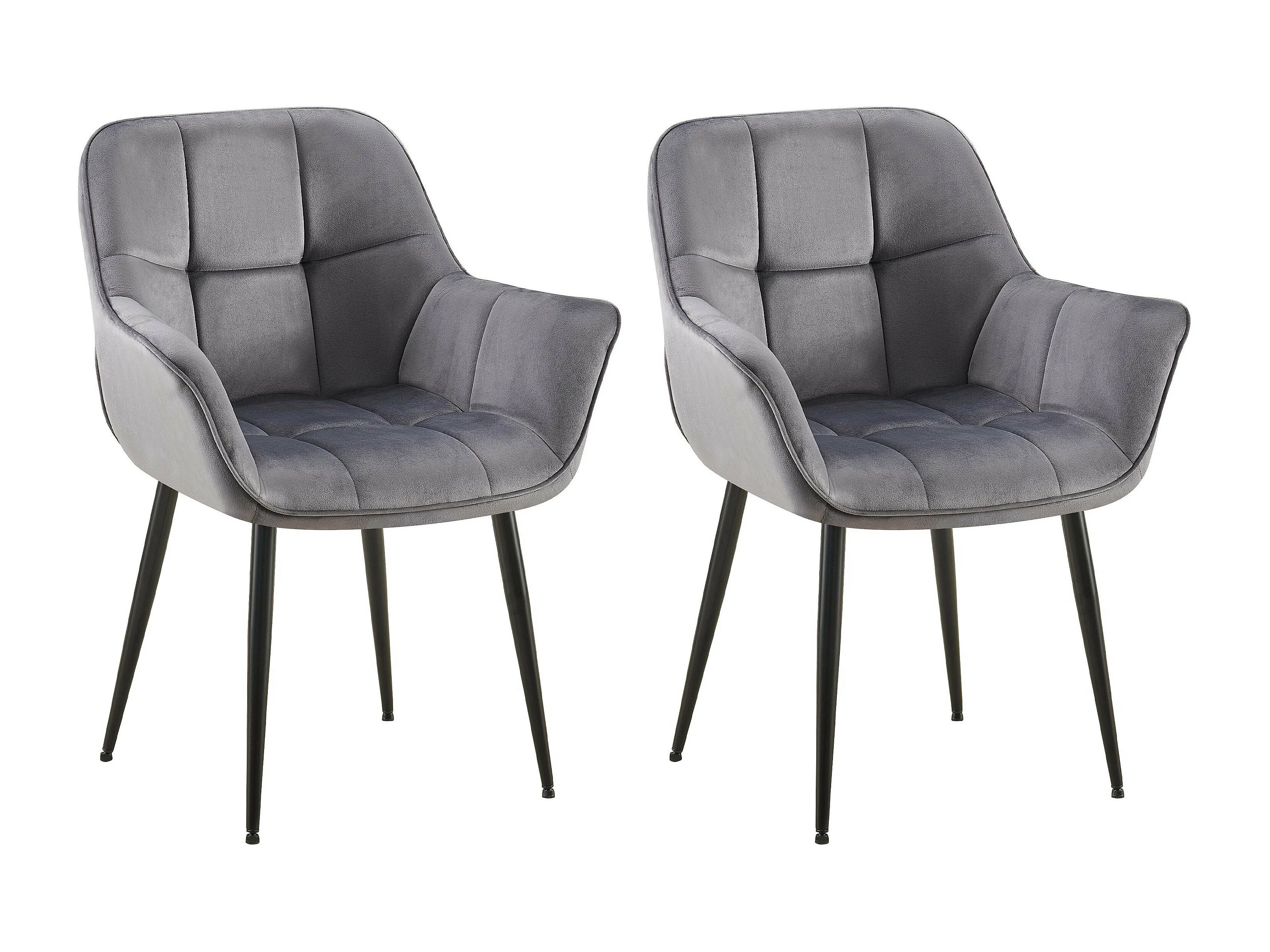 Lot de 2 chaises avec accoudoirs - Velours - Gris foncé - Roseville