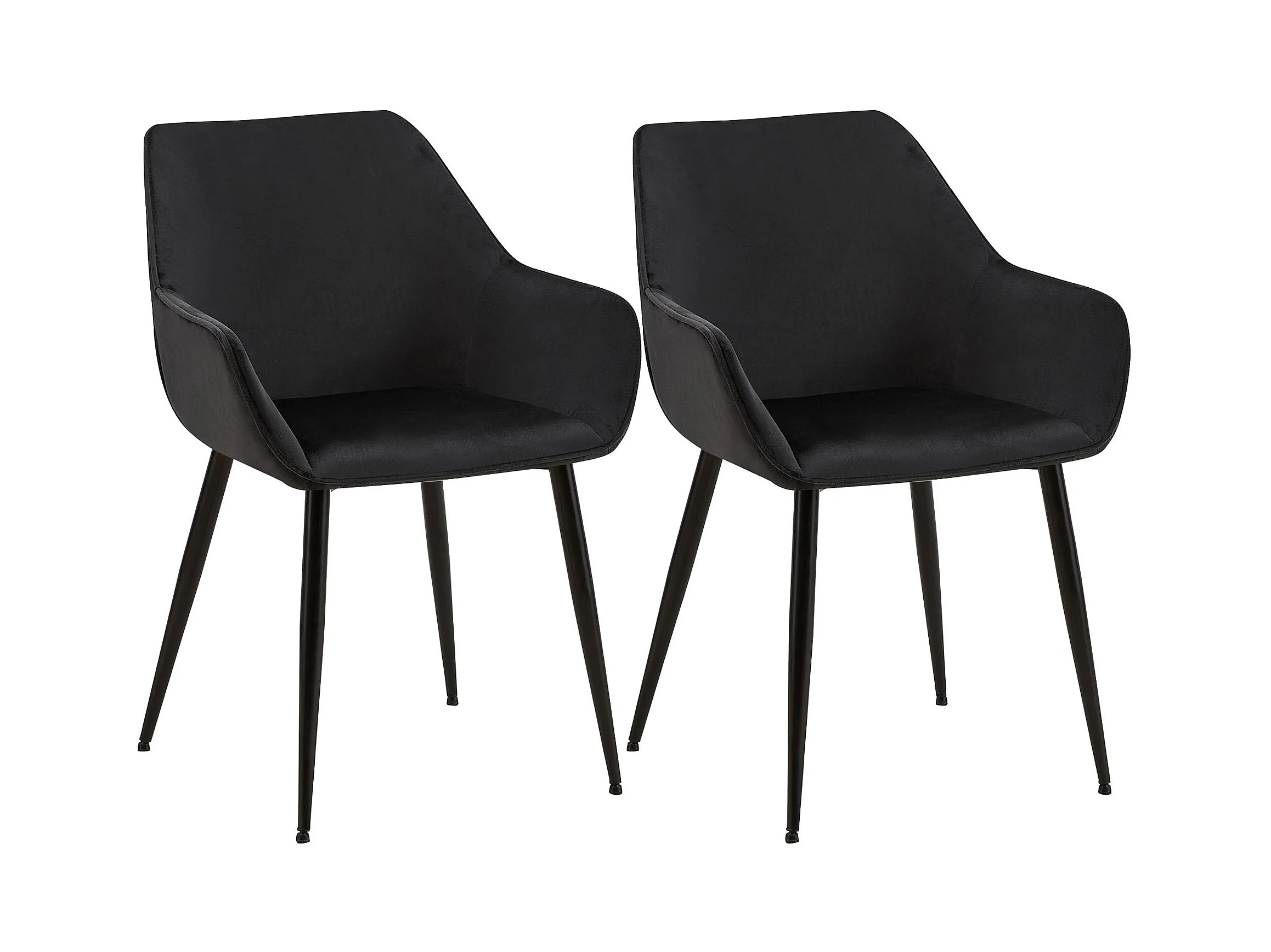 Lot de 2 chaises avec accoudoirs - Velours - Noir - Shila