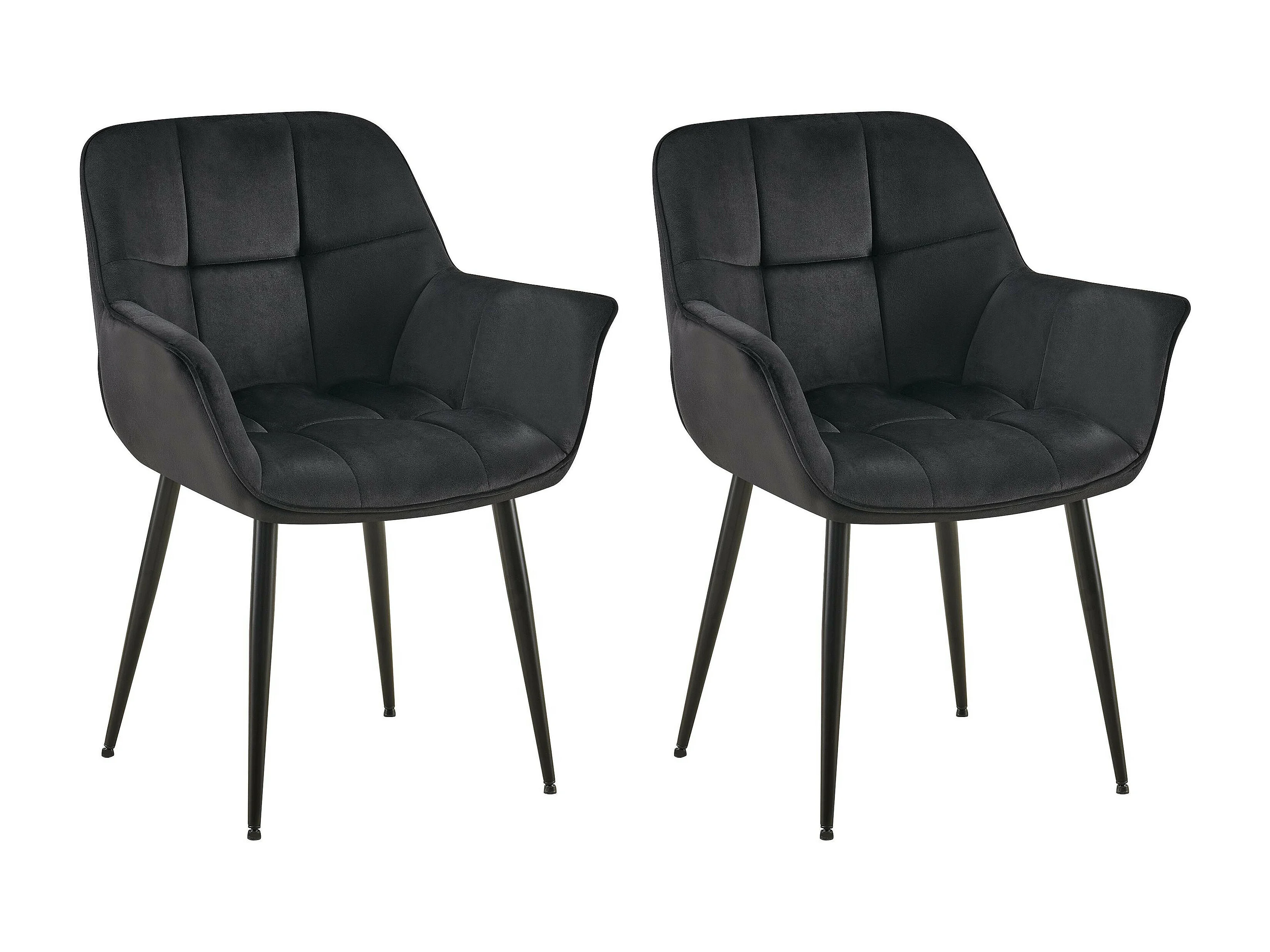 Lot de 2 chaises avec accoudoirs - Velours - Noir - Roseville