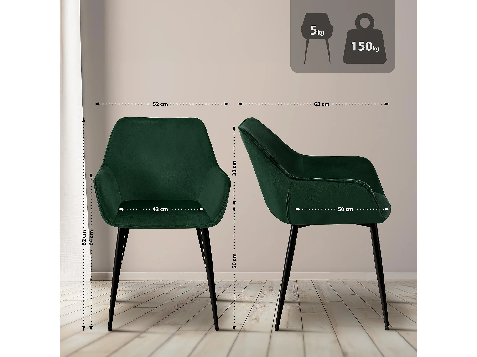 Lot de 2 chaises avec accoudoirs - Velours - Vert - Emia