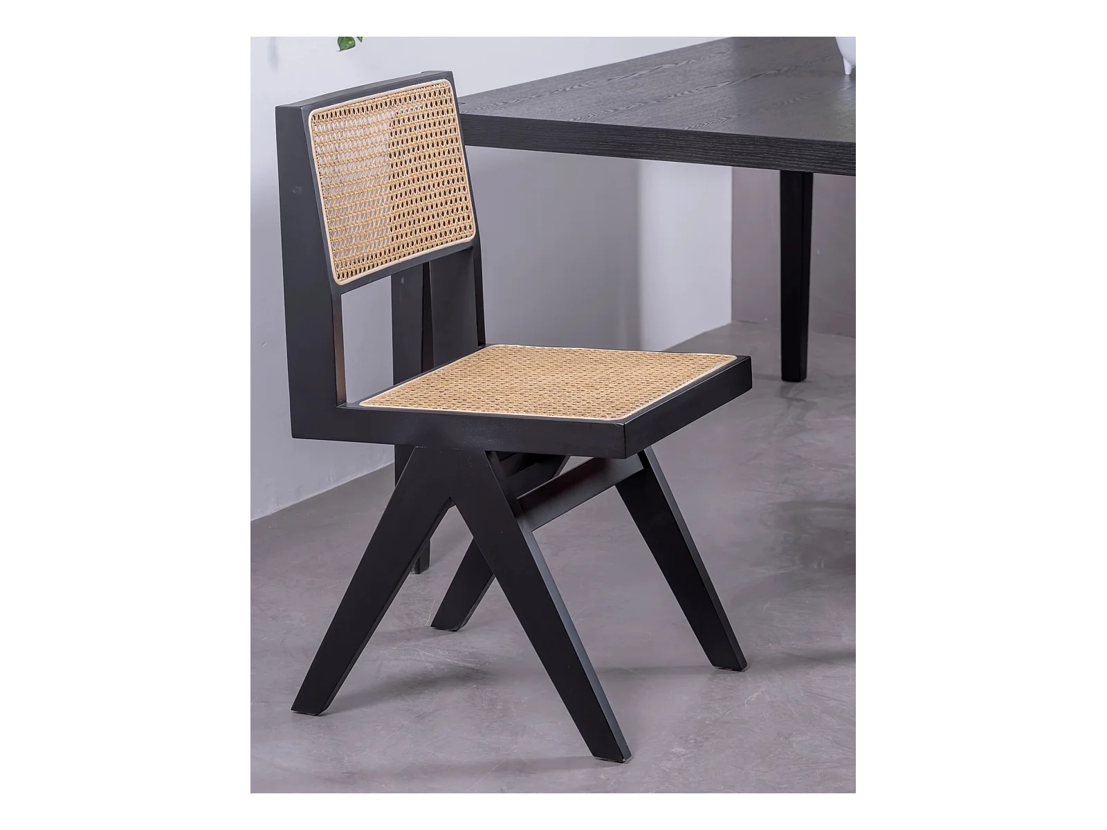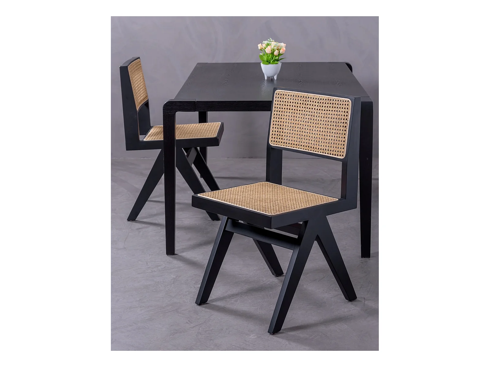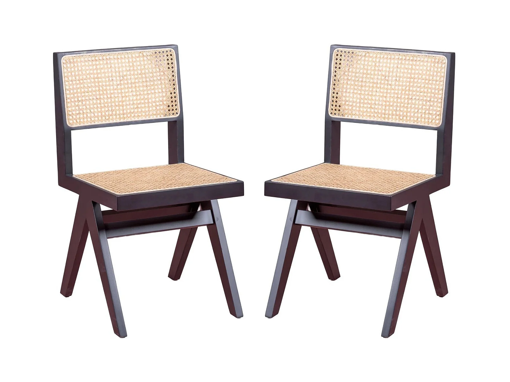 Lot de 2 chaises classiques en bois et rotin naturel - Compass - Noir