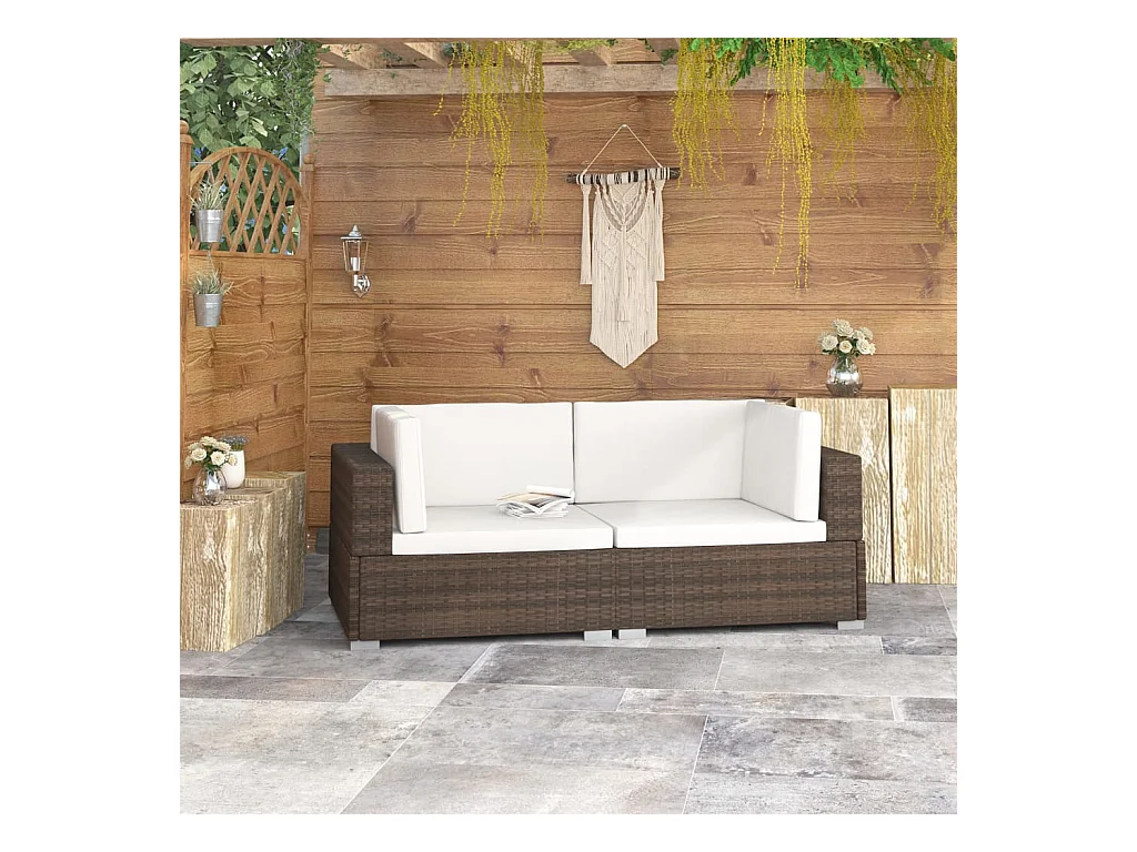 Lot de 2 Chaises d'angles avec coussins Résine tressée Marron FR50658
