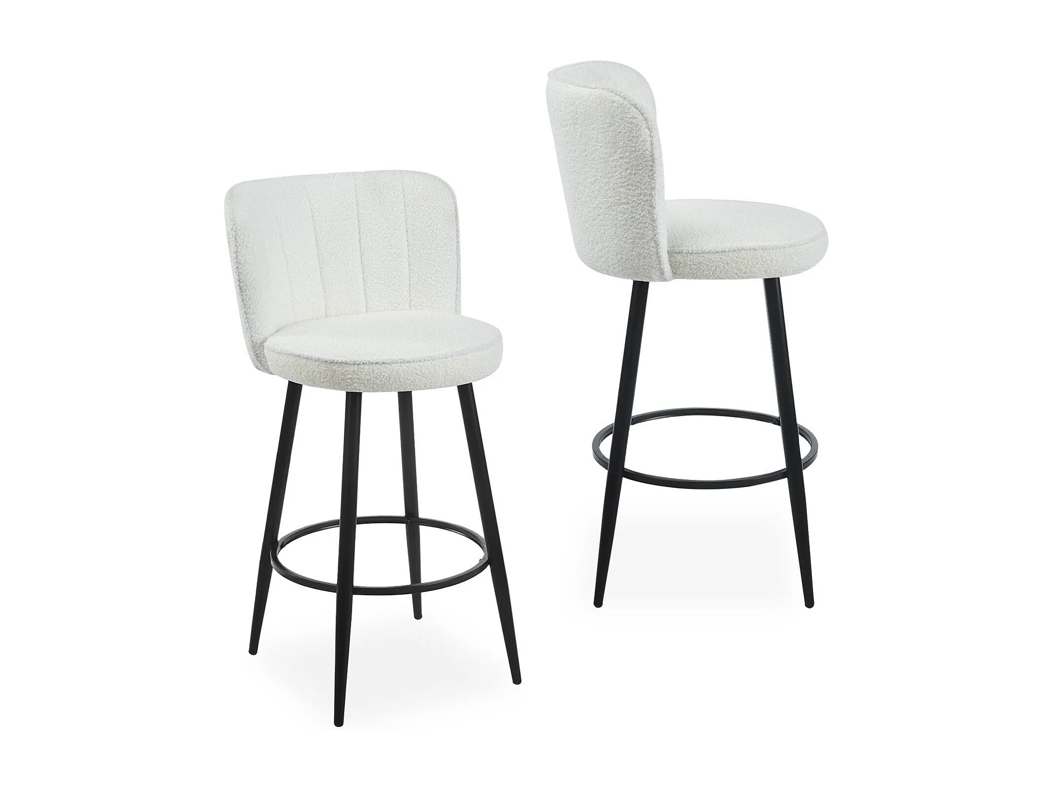 Lot de 2 chaises de bar au dossier incurvé Philippa Tissu bouclette Crème