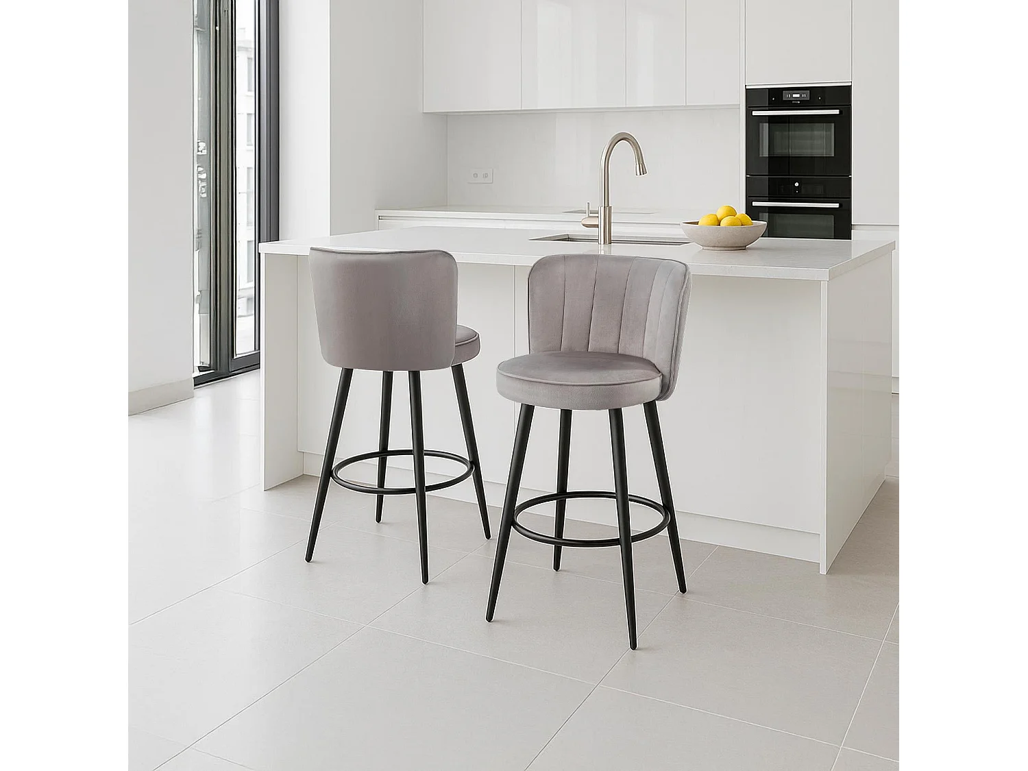 Lot de 2 chaises de bar au dossier incurvé Philippa Velours Taupe grisé