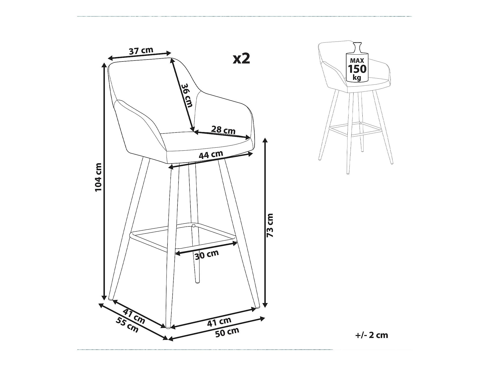 Lot de 2 chaises de bar CASMALIA Velours Taupe