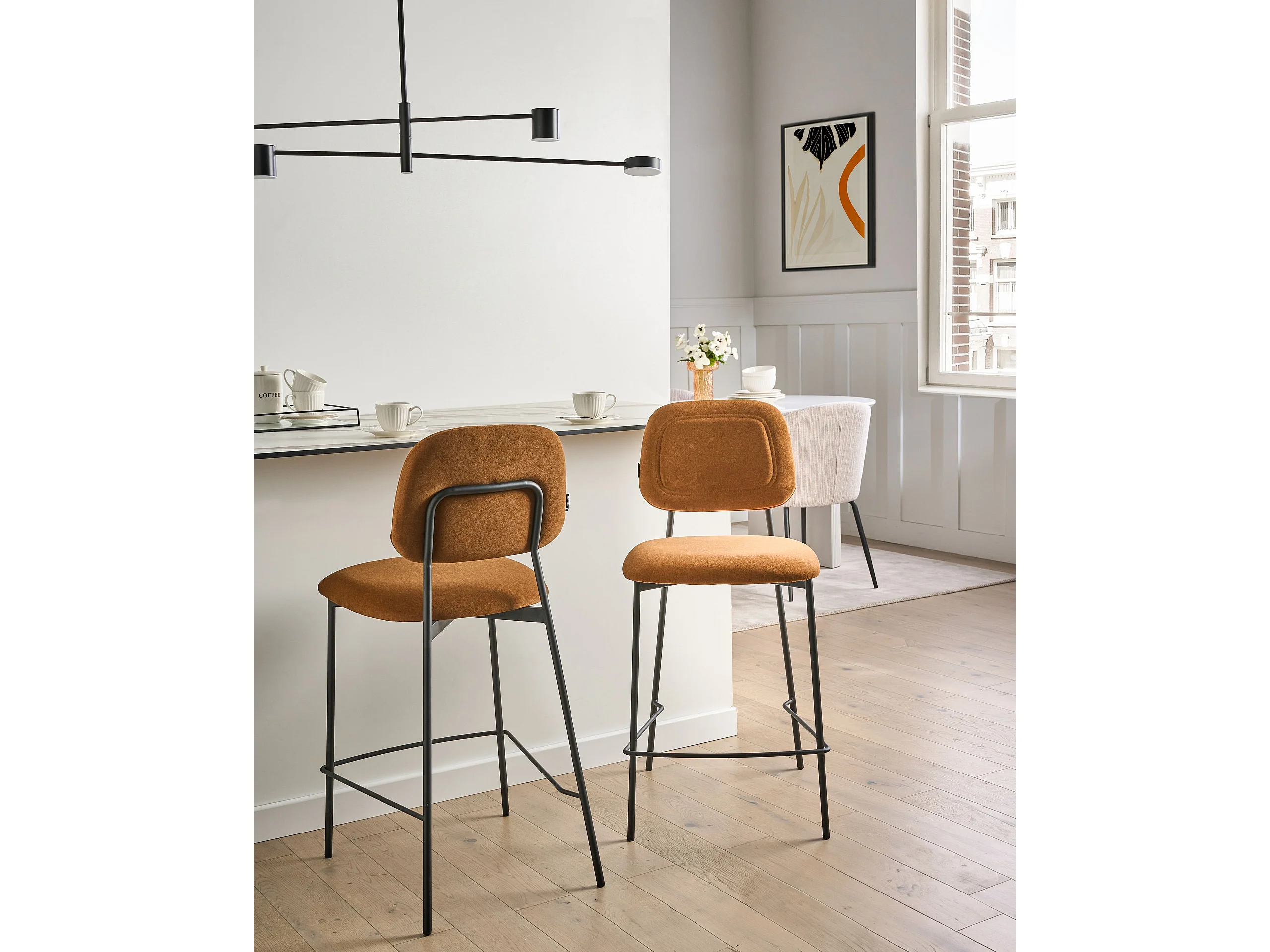 Lot de 2 chaises de bar DUETTE Velours Marron doré