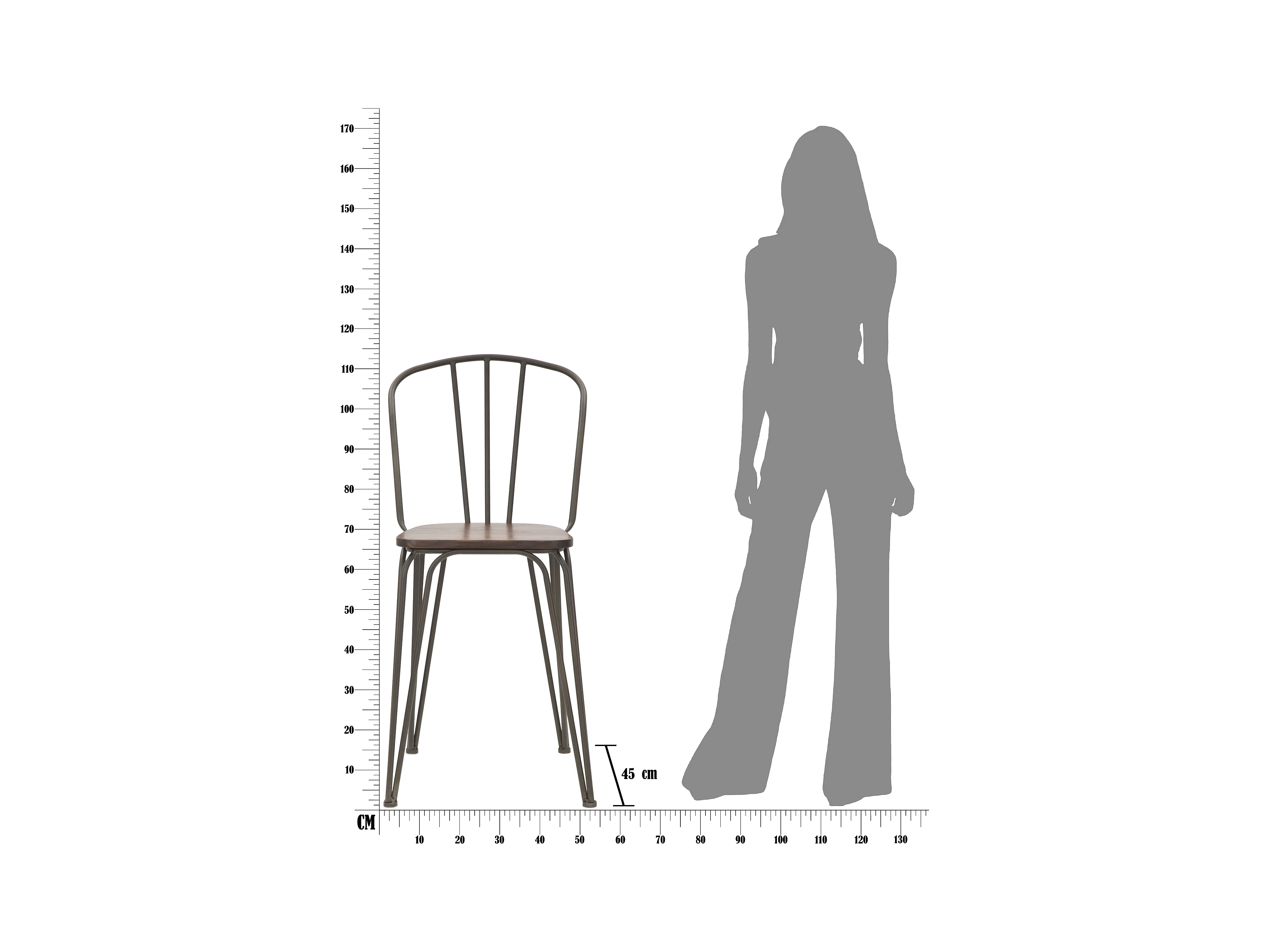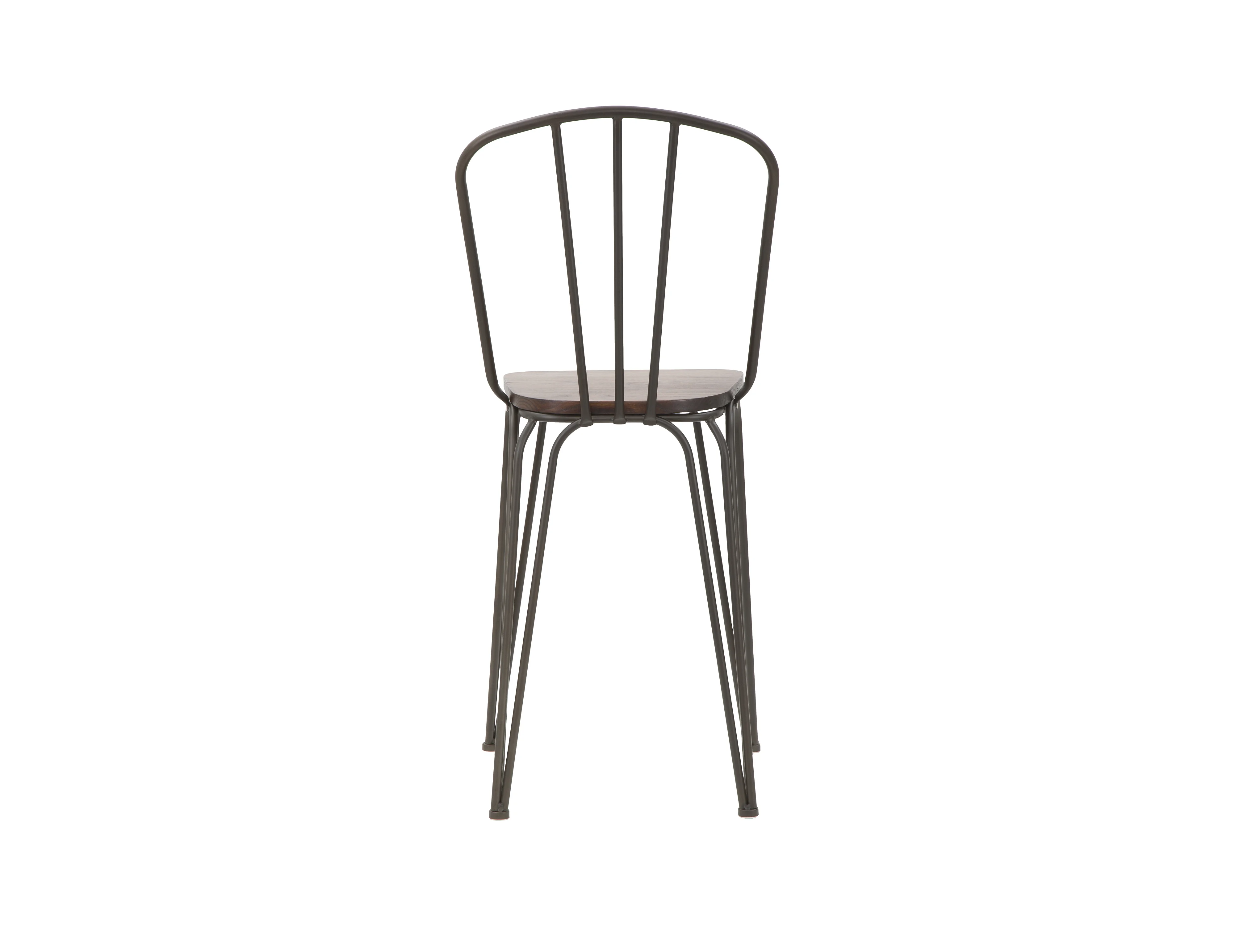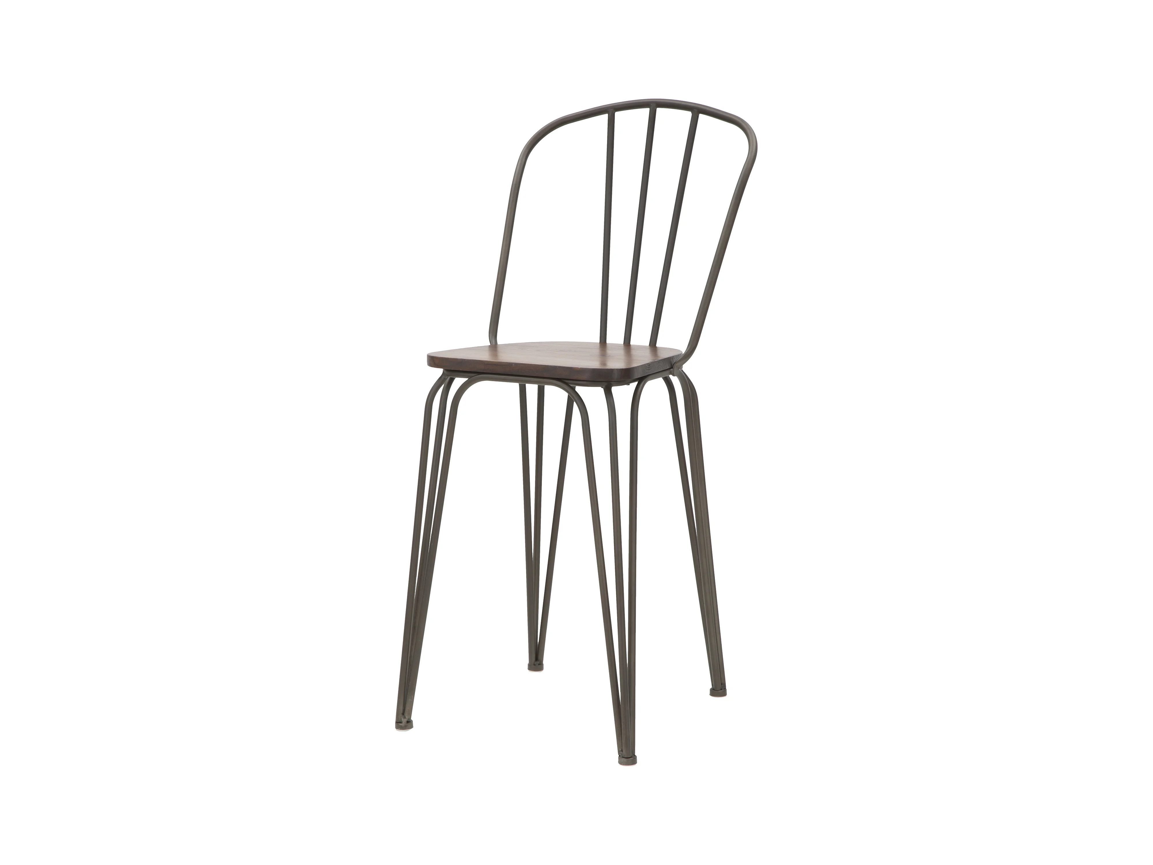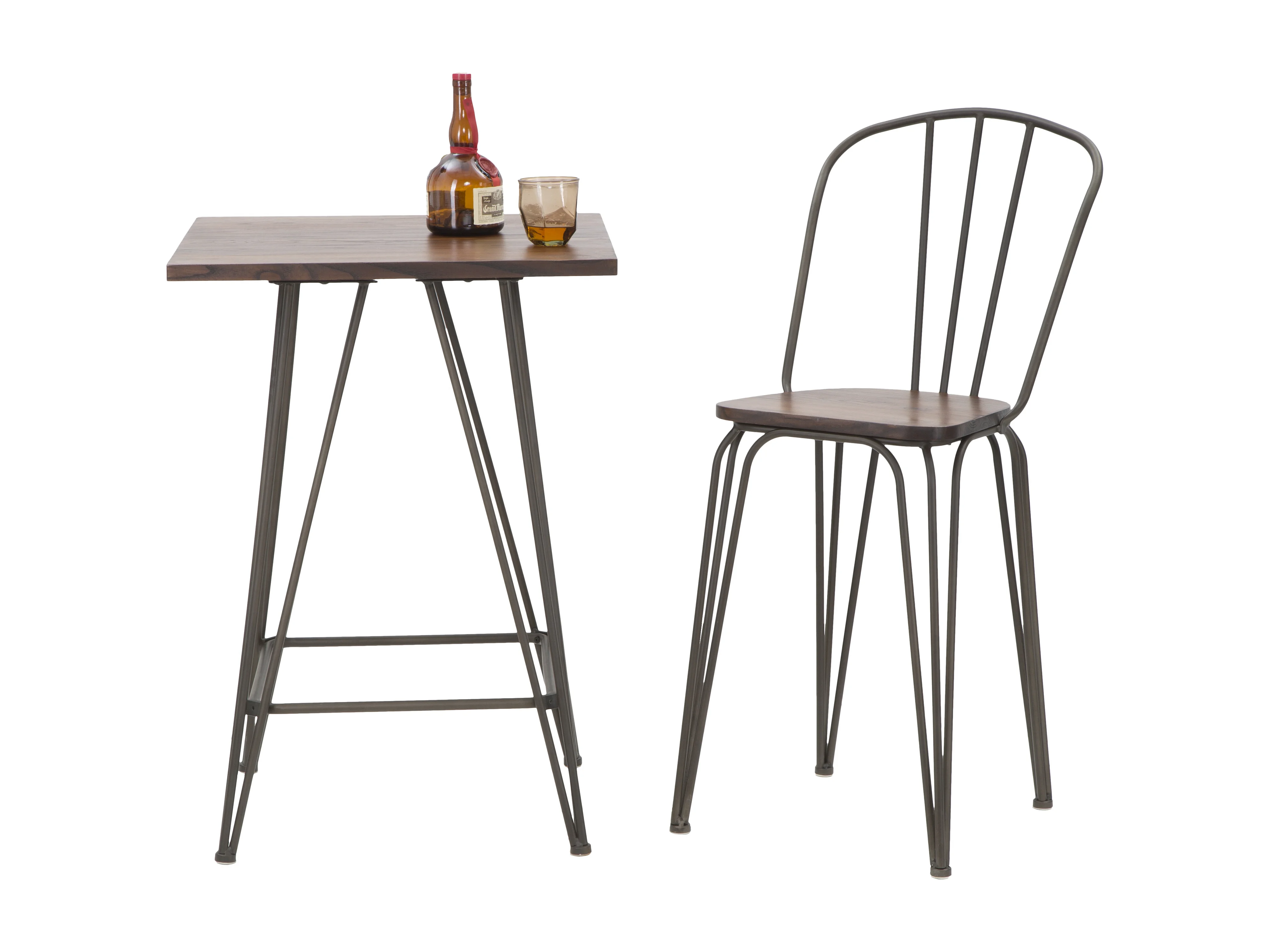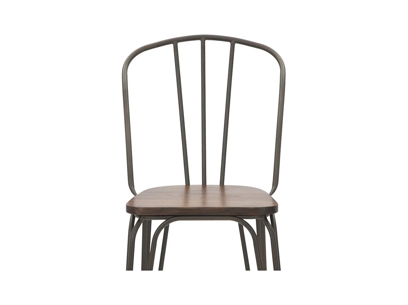 Tabouret de bar style industriel avec dossier en métal silver et assise en bois clair - Hauteur 76 cm