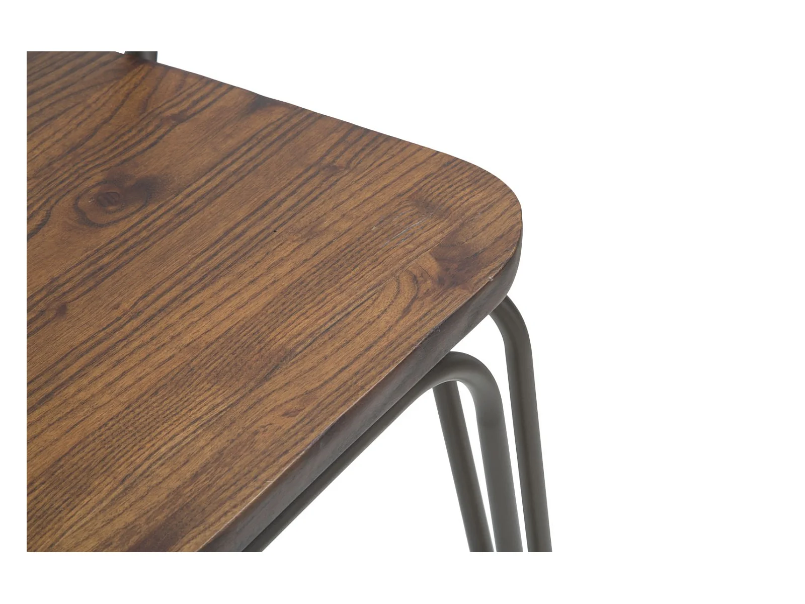 Tabouret industriel en métal et bois d'orme huilé (Lot de 4) Acier brossé