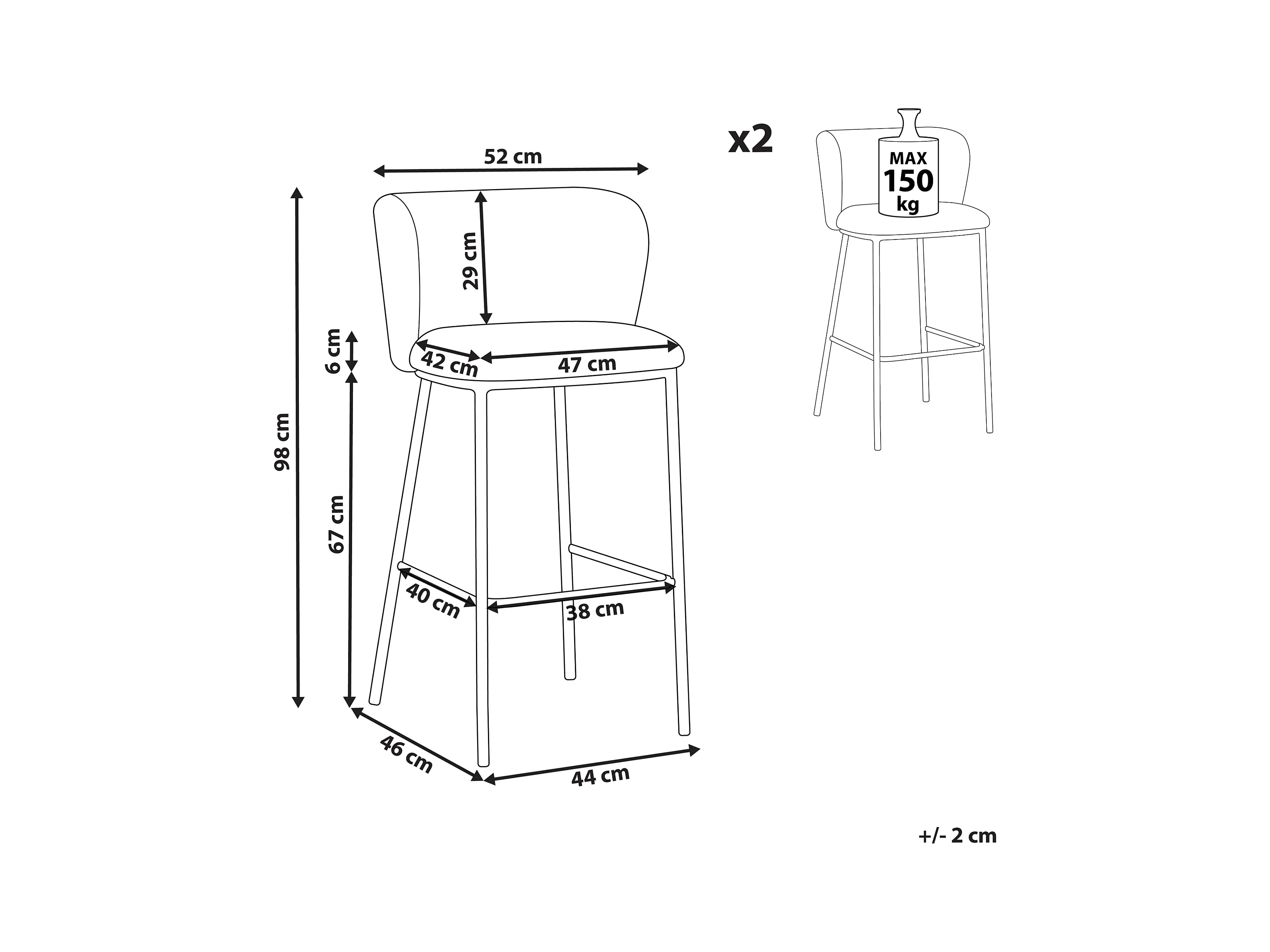 Lot de 2 chaises de bar MINA Vert foncé