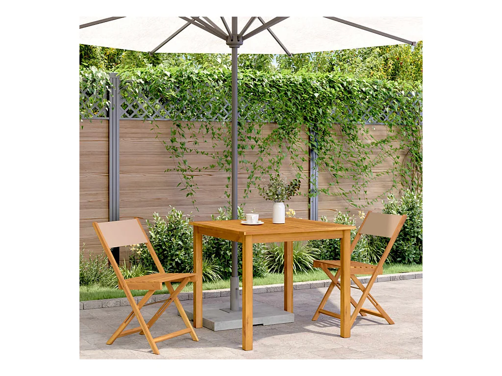 Chaises de jardin avec table à thé et coussins Acacia solide FR67424