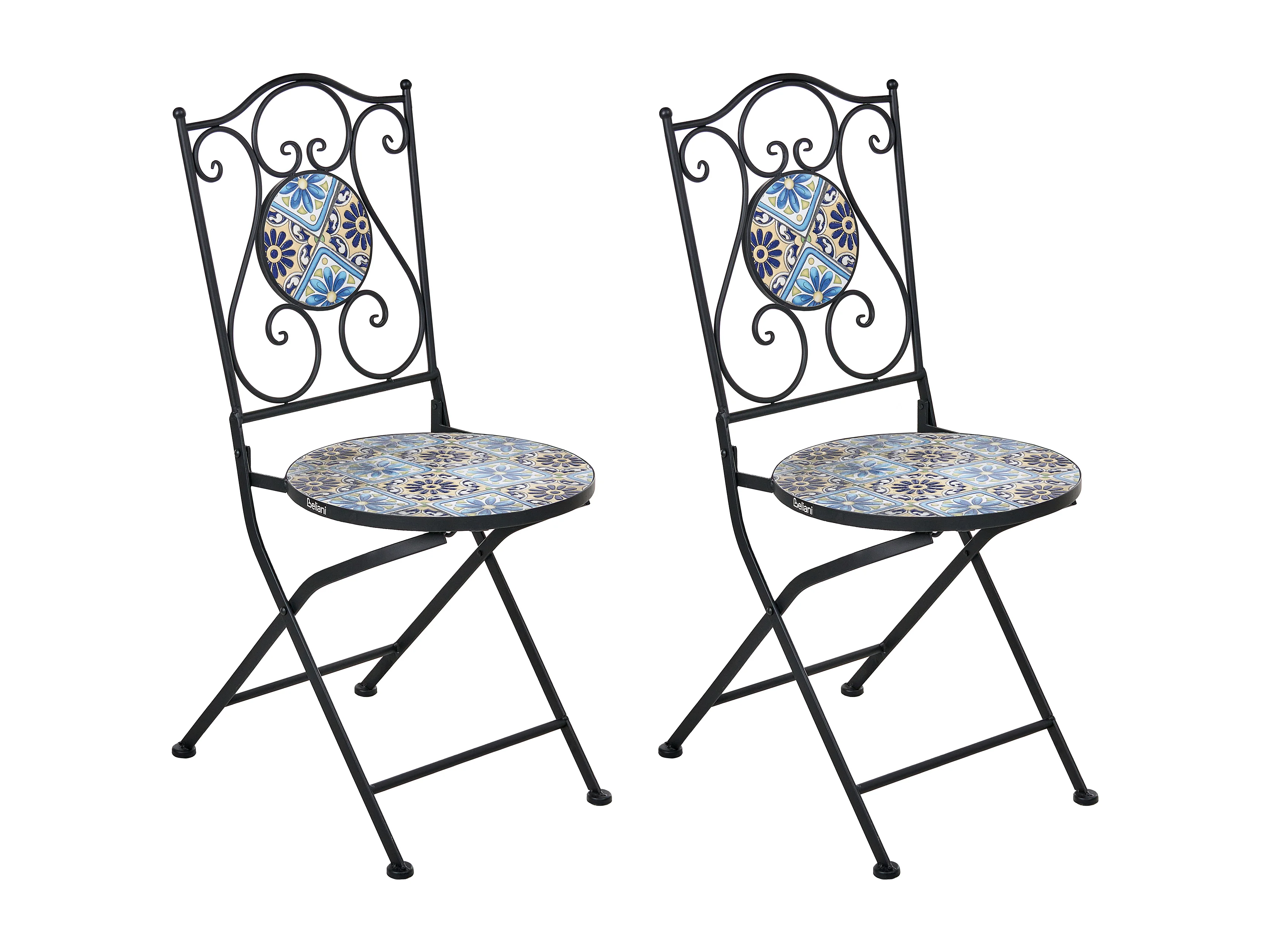 Chaise pliable de jardin en métal noir et céramique Lacie - Lot de 2