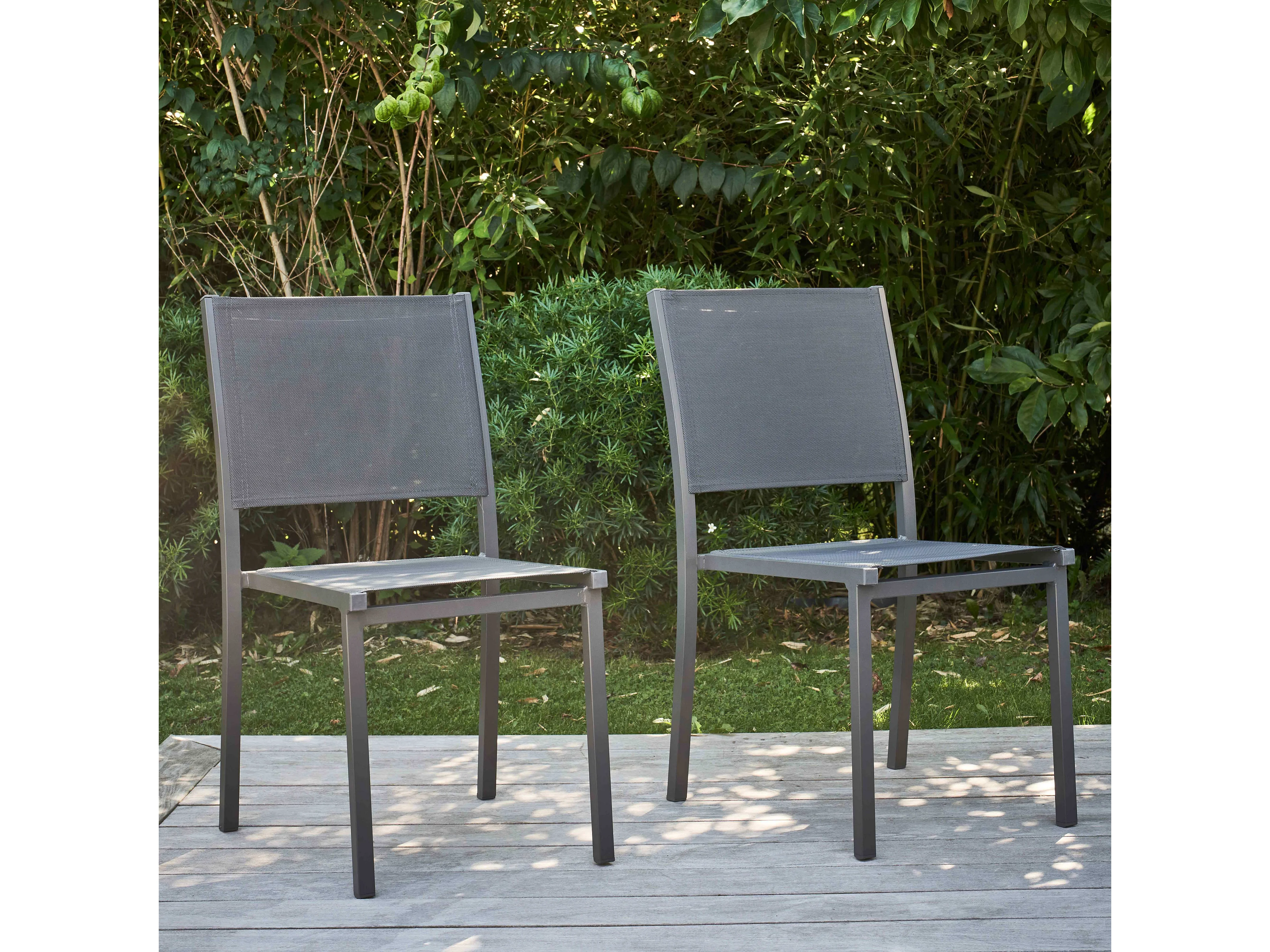 Lot de 2 chaises de jardin aluminium et textilène gris