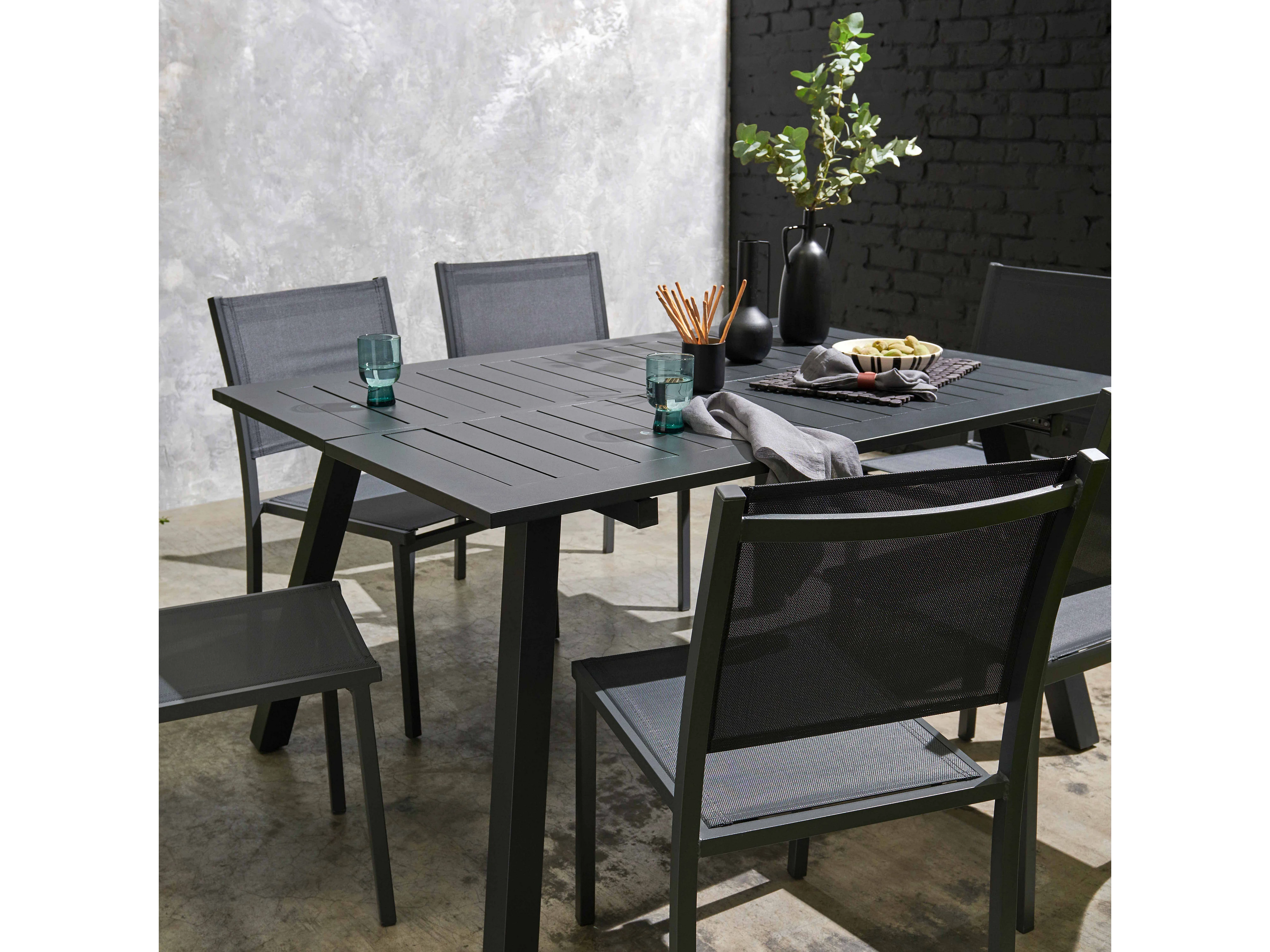 Lot de 2 chaises de jardin CLEVELAND empilables aluminium et textilene anthracite. 64.5 x 45.5 x 89.5 cm