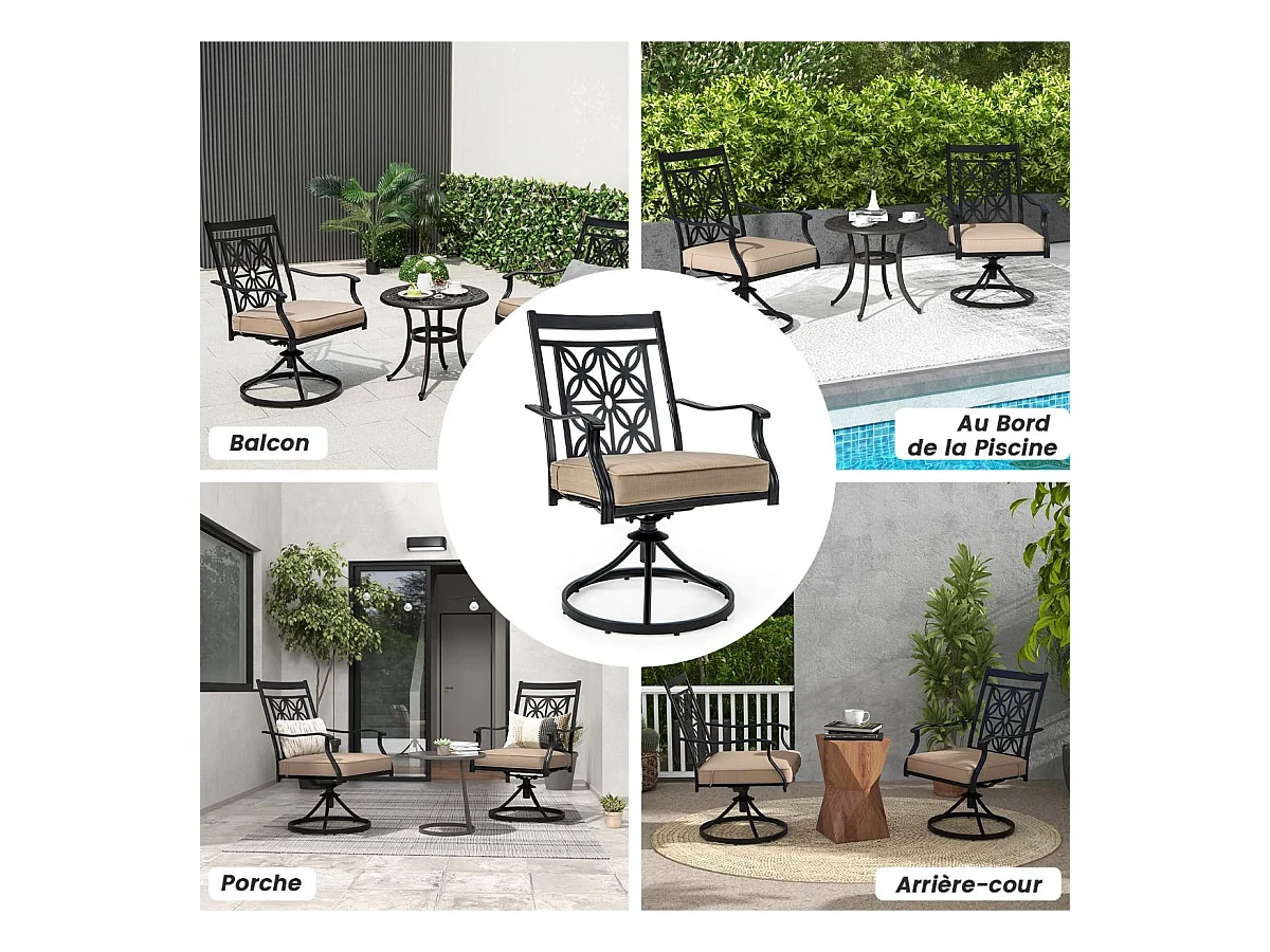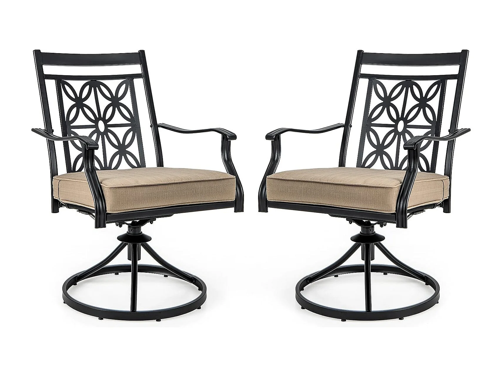 Lot de 2 Chaises de Jardin avec Coussin Amovible, Chaises Pivotantes à 360° avec Cadre en Métal, Dossier à Motif Fleuri, Charge 150 KG (Style 1)