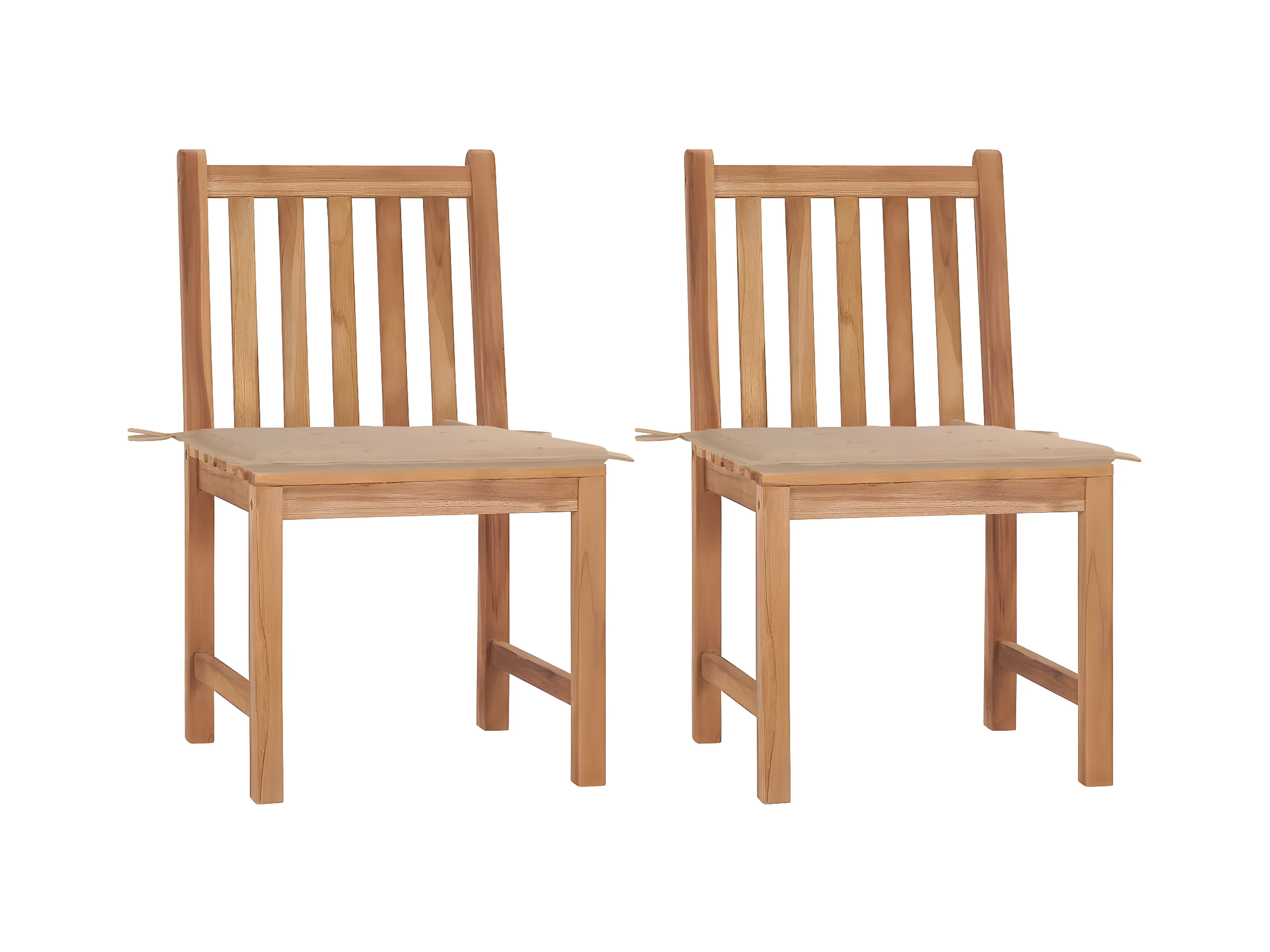 Lot de 2 Chaises de jardin avec coussins Bois de teck massif FR23909