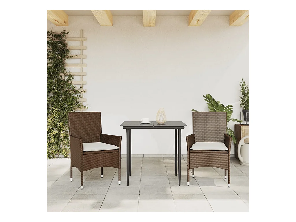 Chaises de jardin avec coussins lot de 2 marron résine tressée