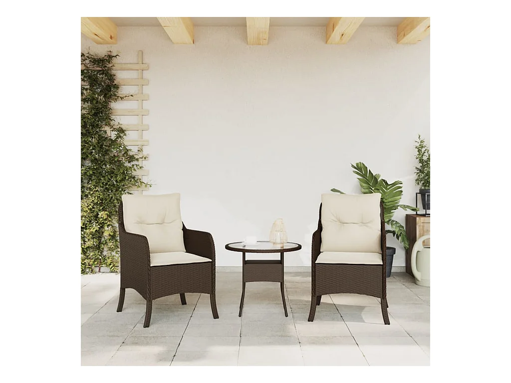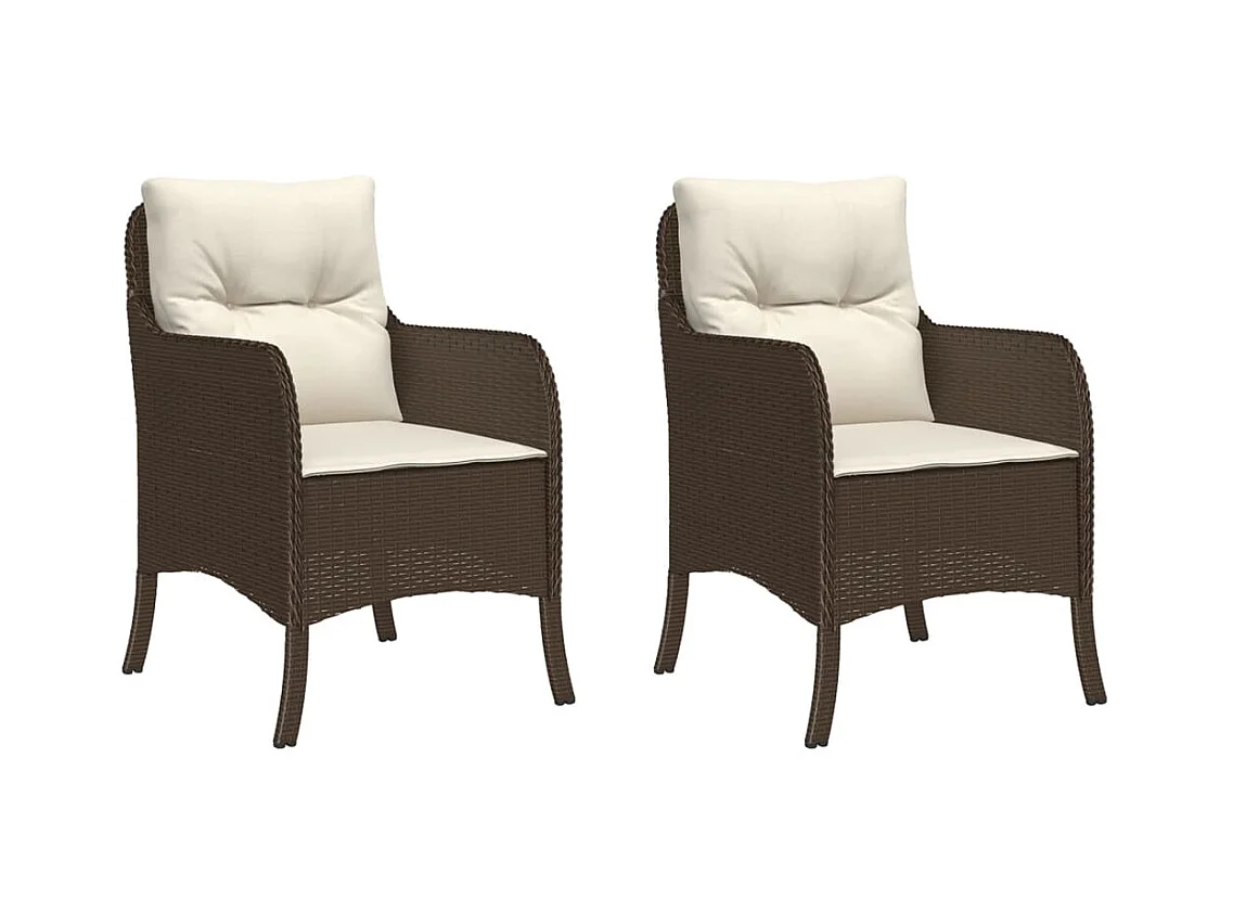 Lot de 2 Chaises de jardin avec coussins marron résine tressée FR93048