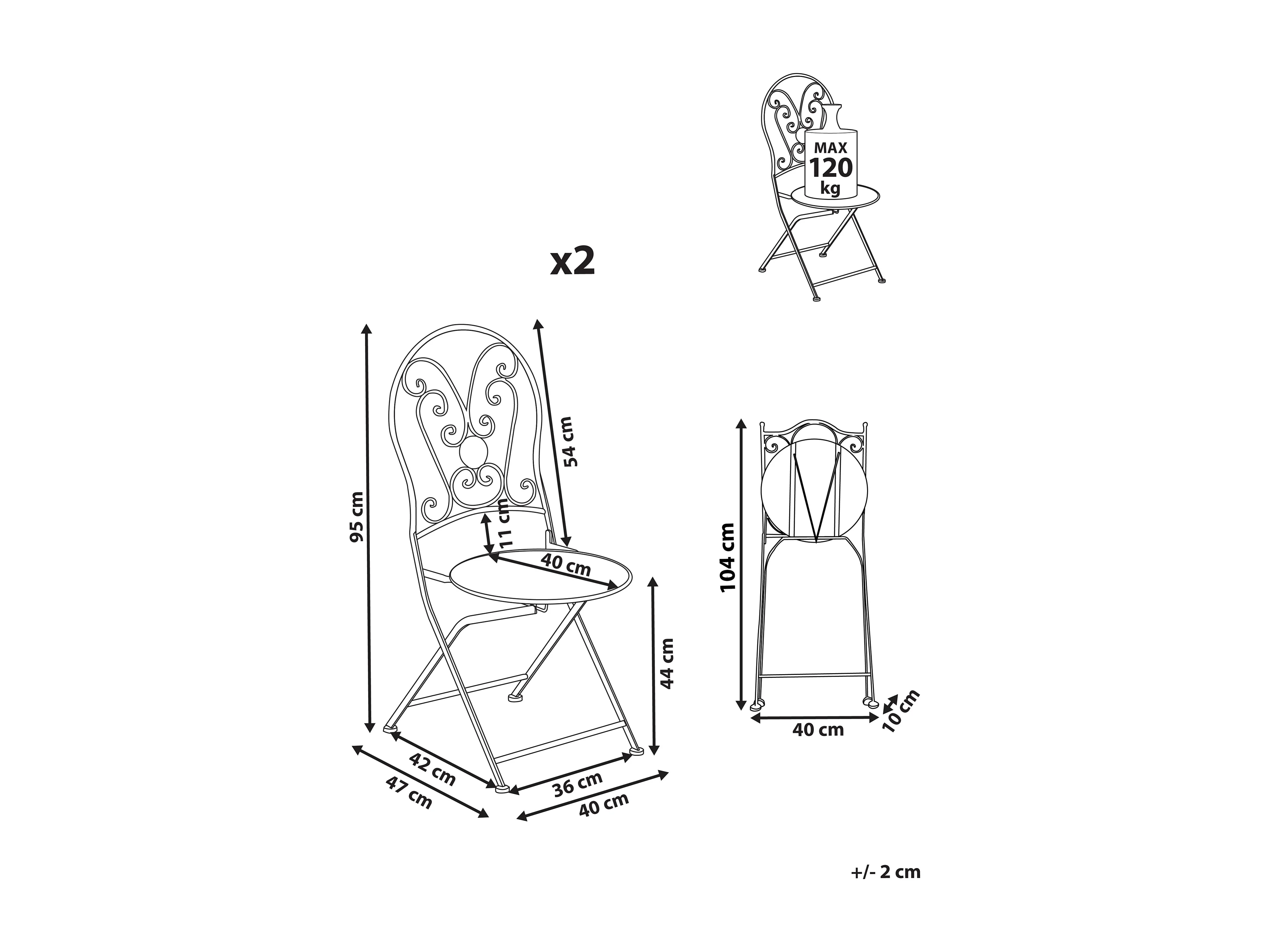 Lot de 2 Chaises de jardin - Métal & Métal - Crème antique - Mani