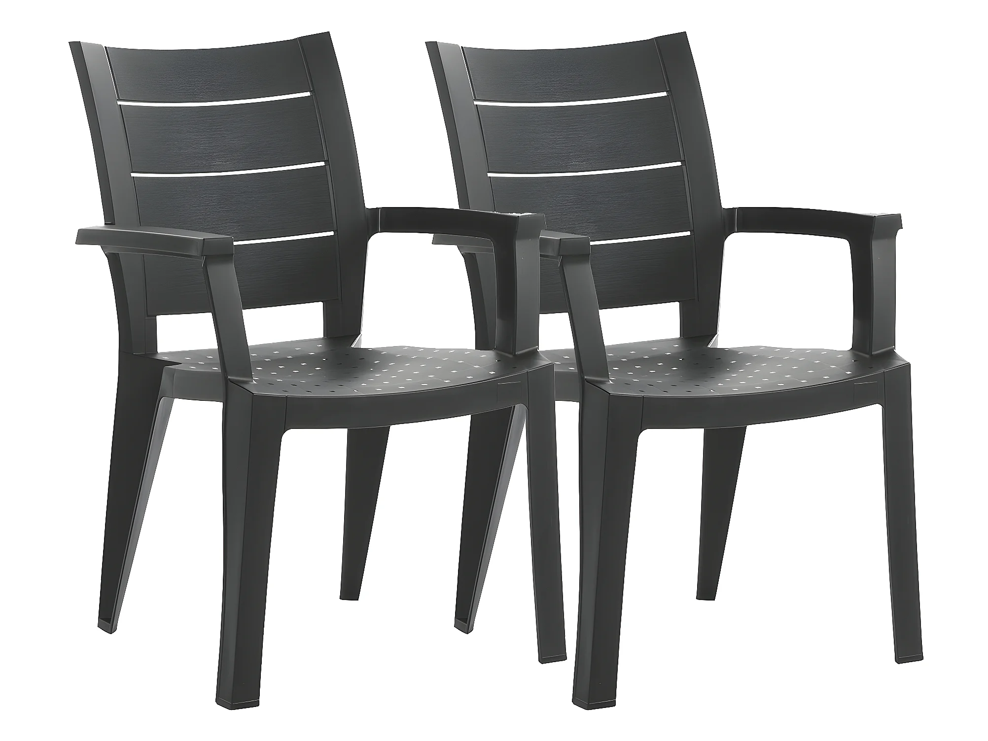 Lot de 2 chaises de jardin empilables en résine coloris Gris - Longueur 59 x Profondeur 60 x Hauteur 90 cm