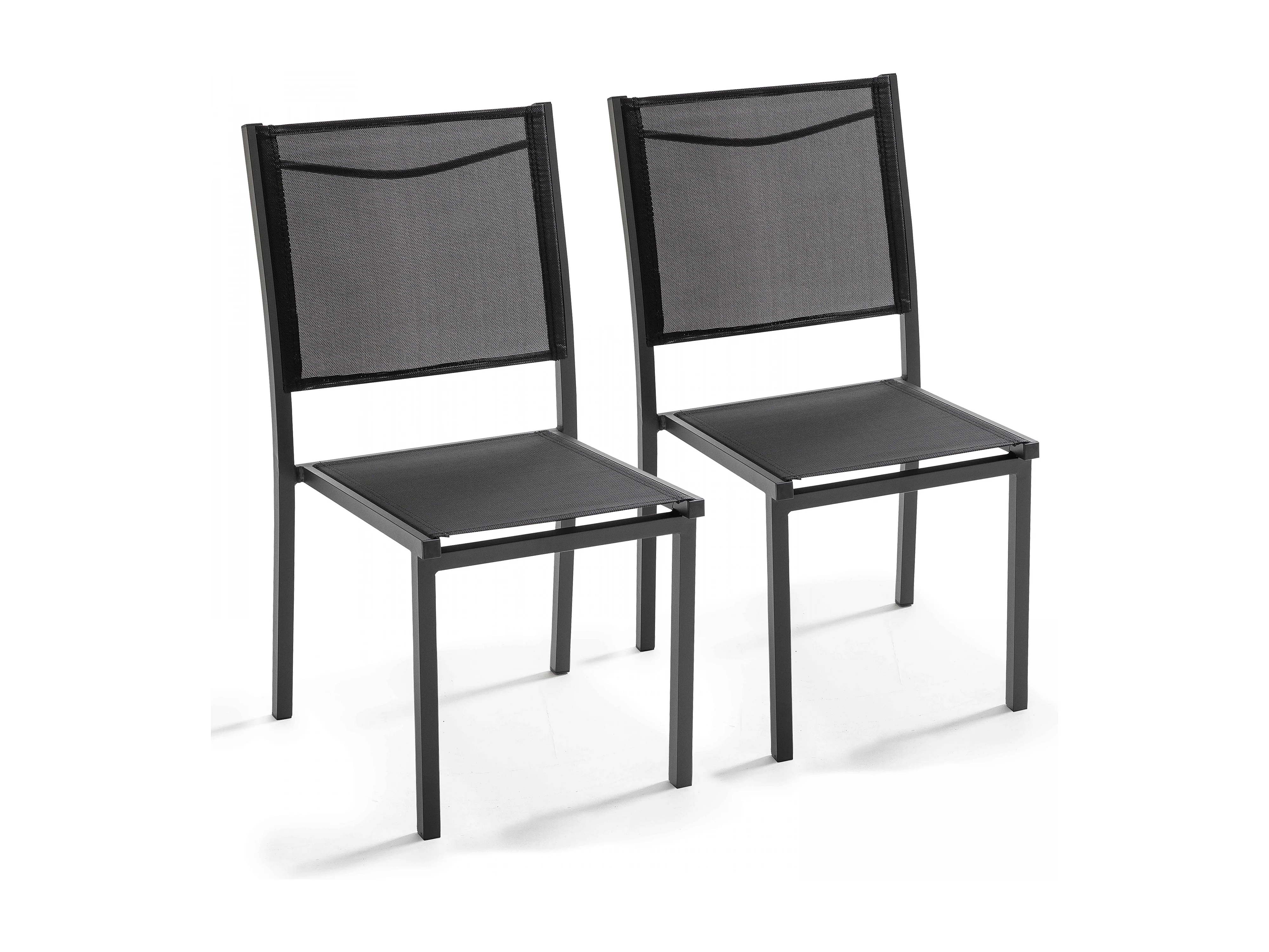 Lot de 2 chaises de jardin en aluminium et textilène noir