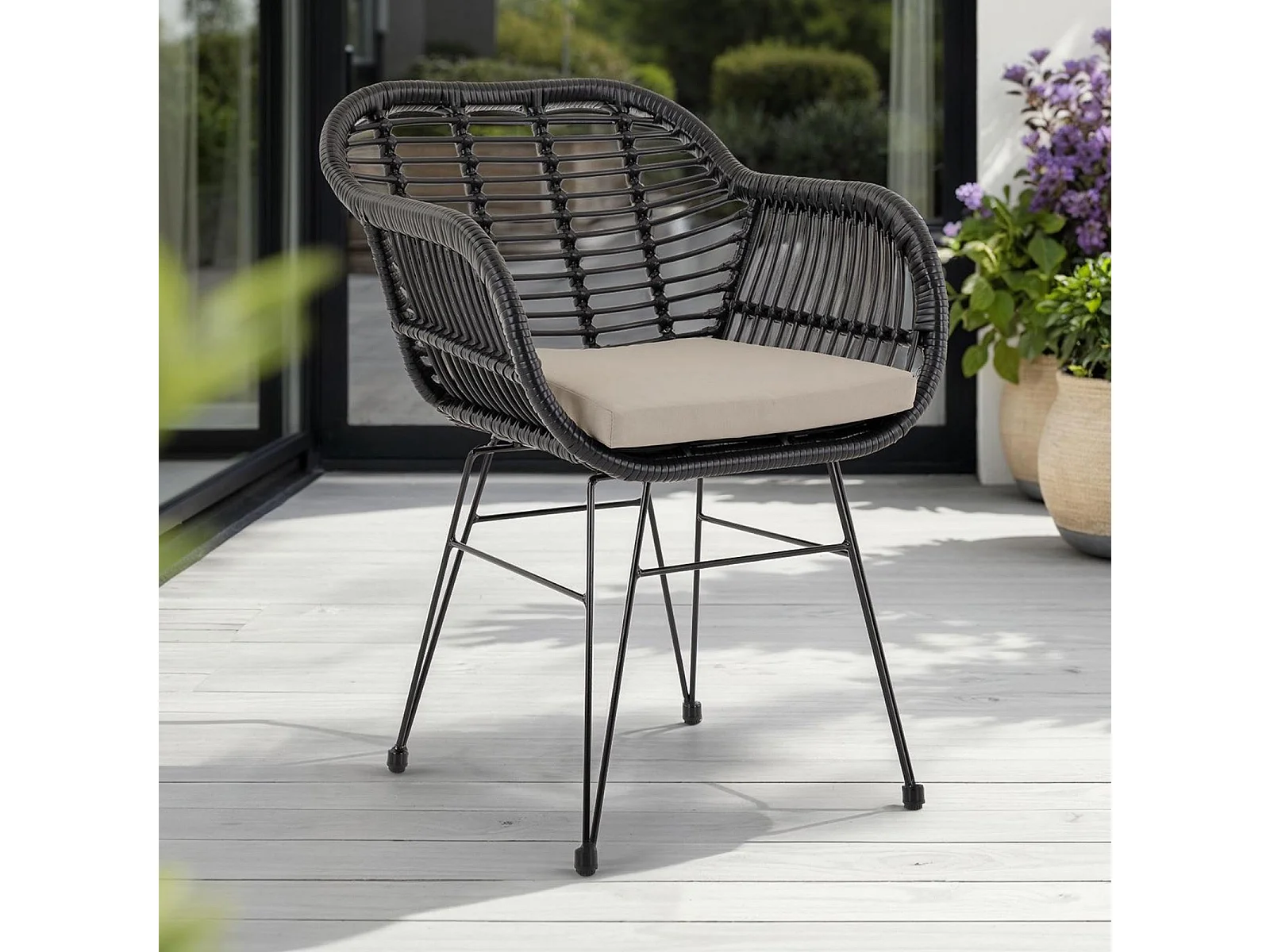 Lot de 2 chaises de jardin PARAMO, imitation rotin noir et beige fauteuil d'extérieur pour terrasse ou balcon