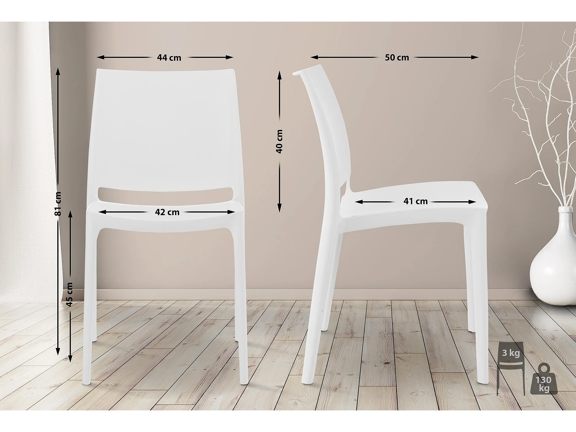 Chaises design blanches empilables intérieur - extérieur (lot de 2) RIOS
