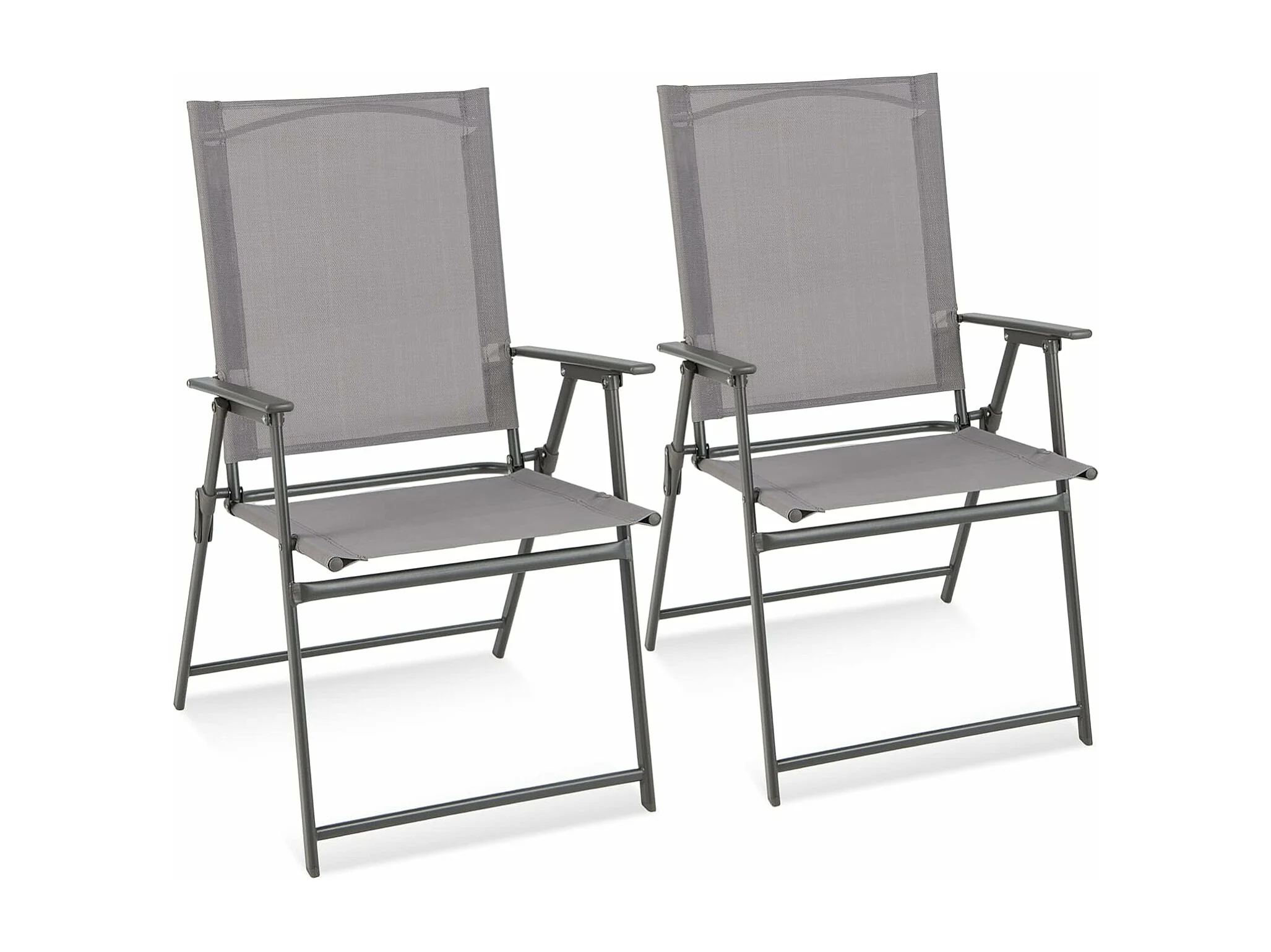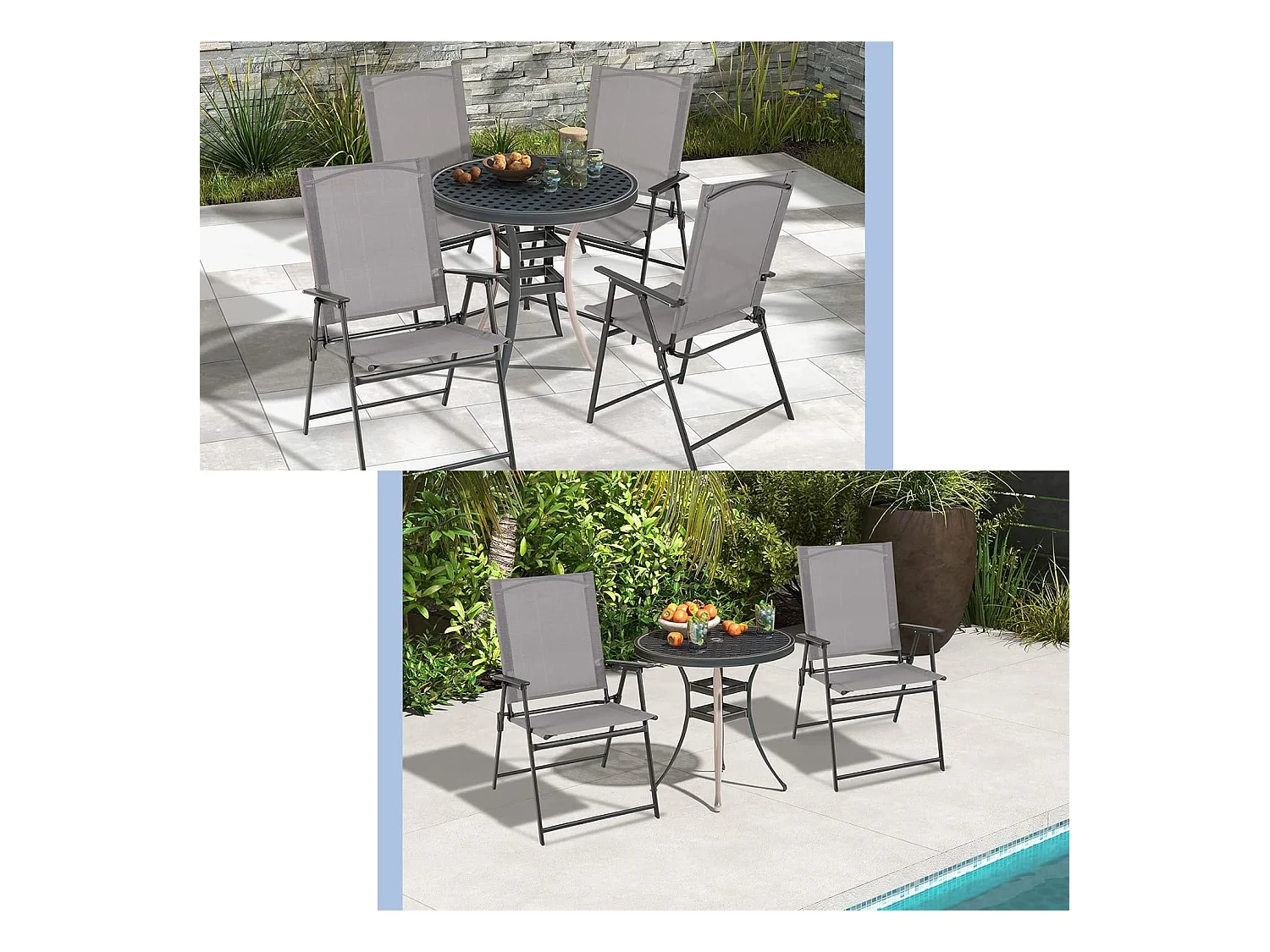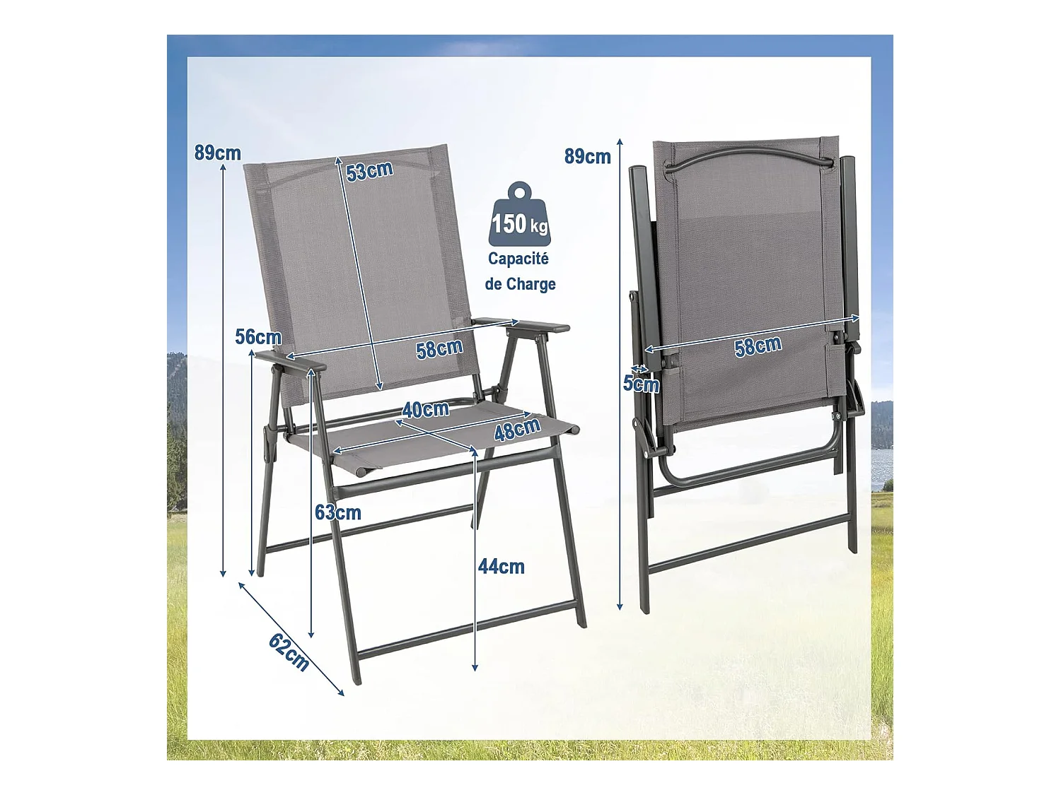 Lot de 2 Chaises de Jardin Pliantes en Textilène & Métal Charge 150 kg Fauteuil de Jardin avec Verrouillage de SécuritéGris