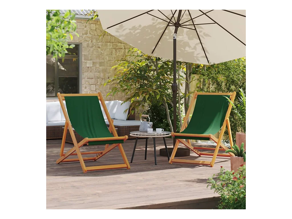 Lot de 2 Chaises de plage pliables vert tissu FR68220
