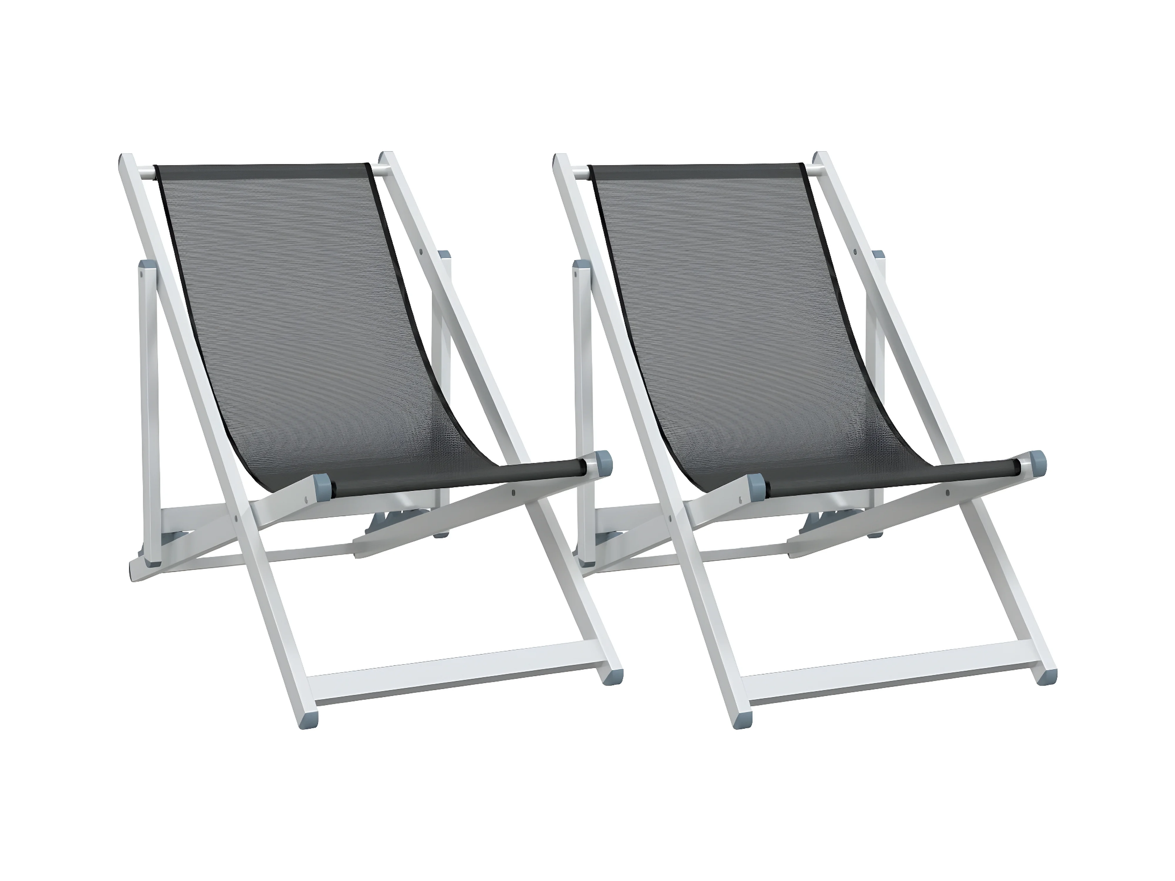 Lot de 2 Chaises de plage pliantes gris aluminium et textilène FR46369