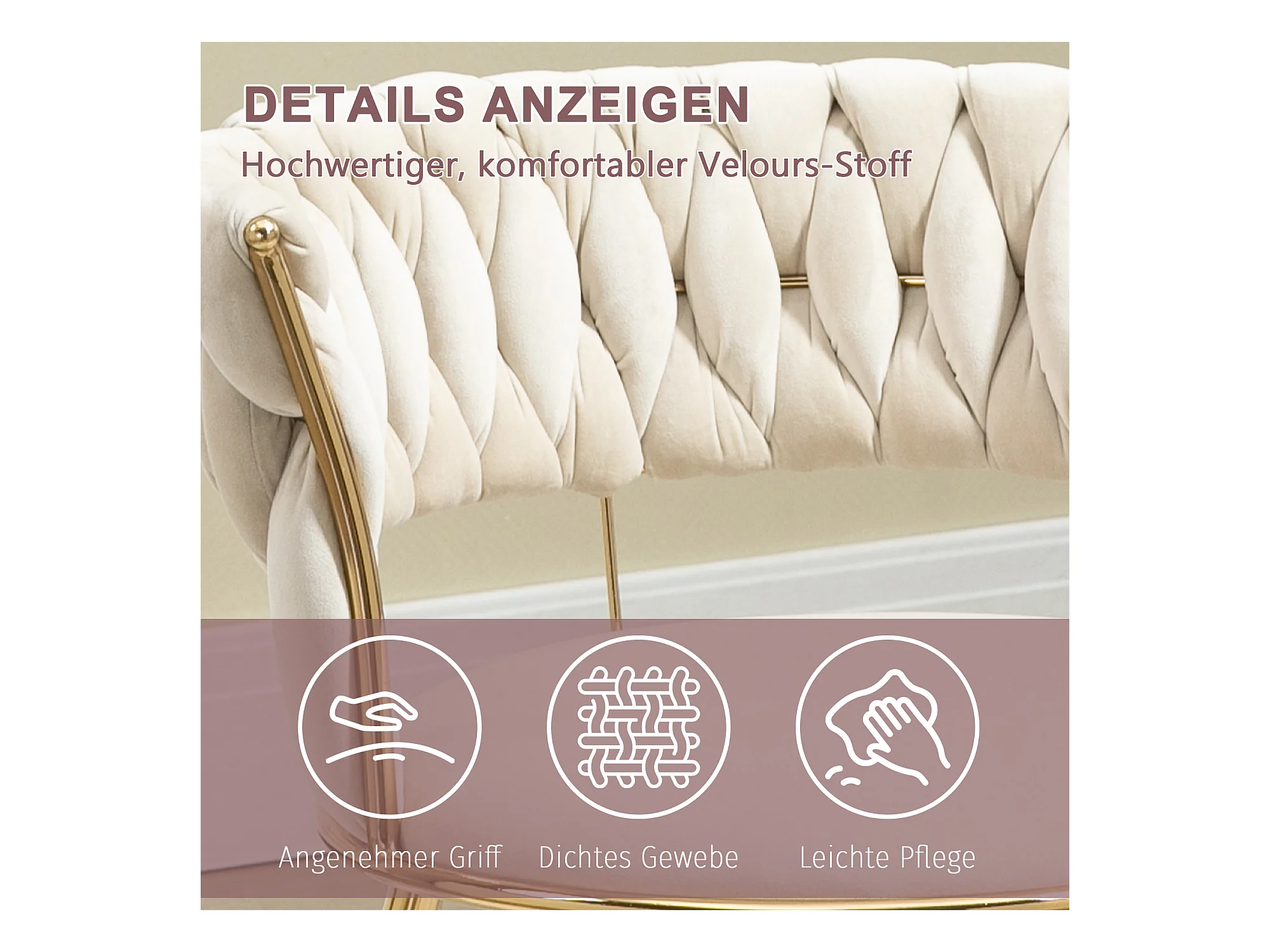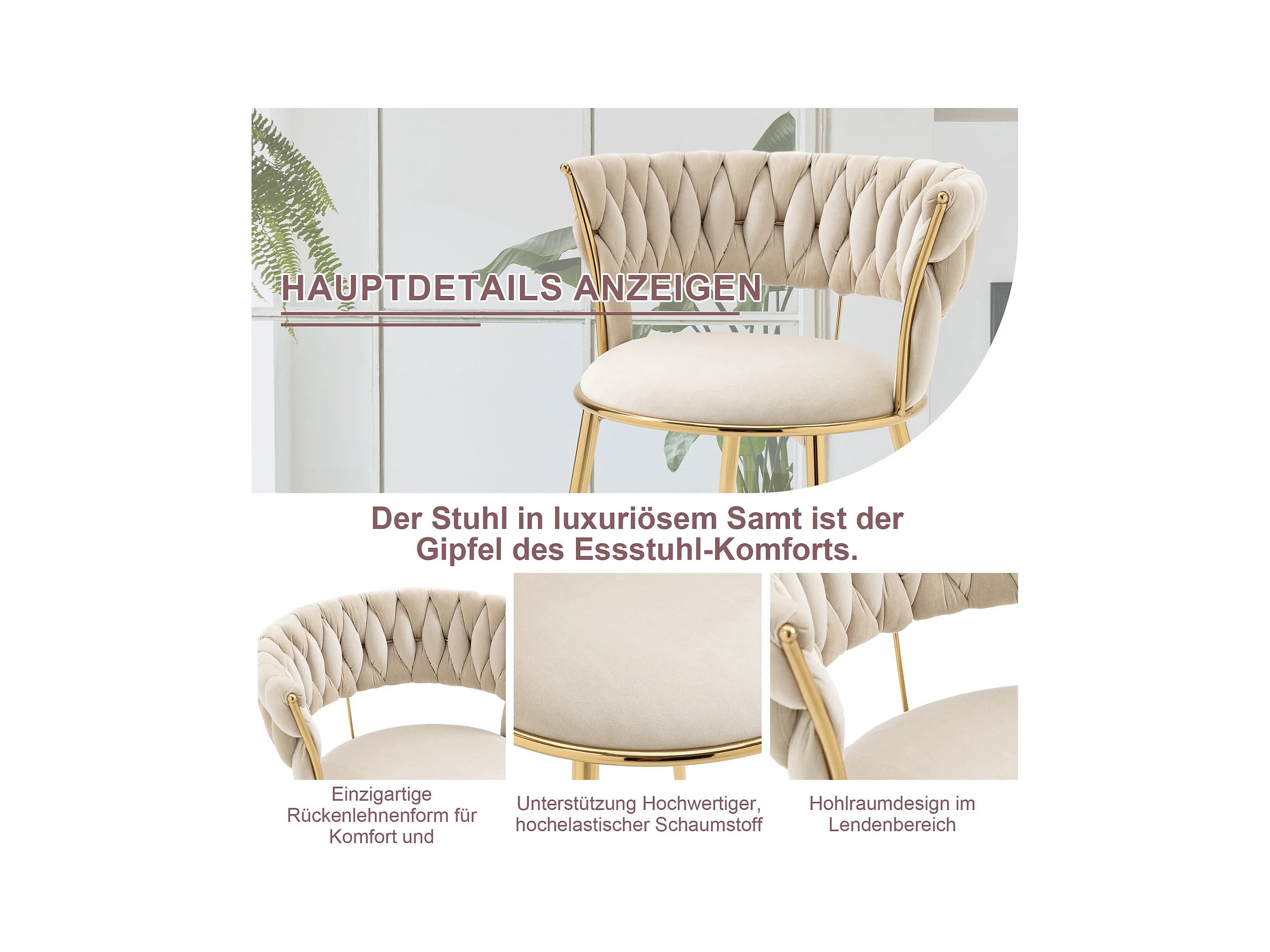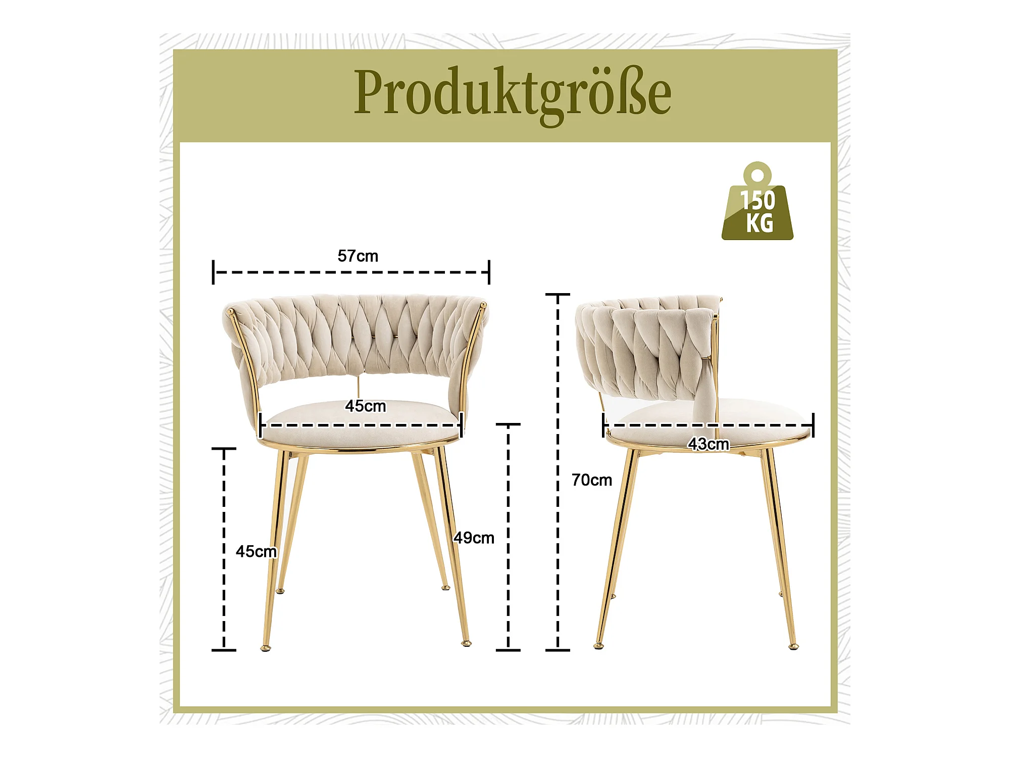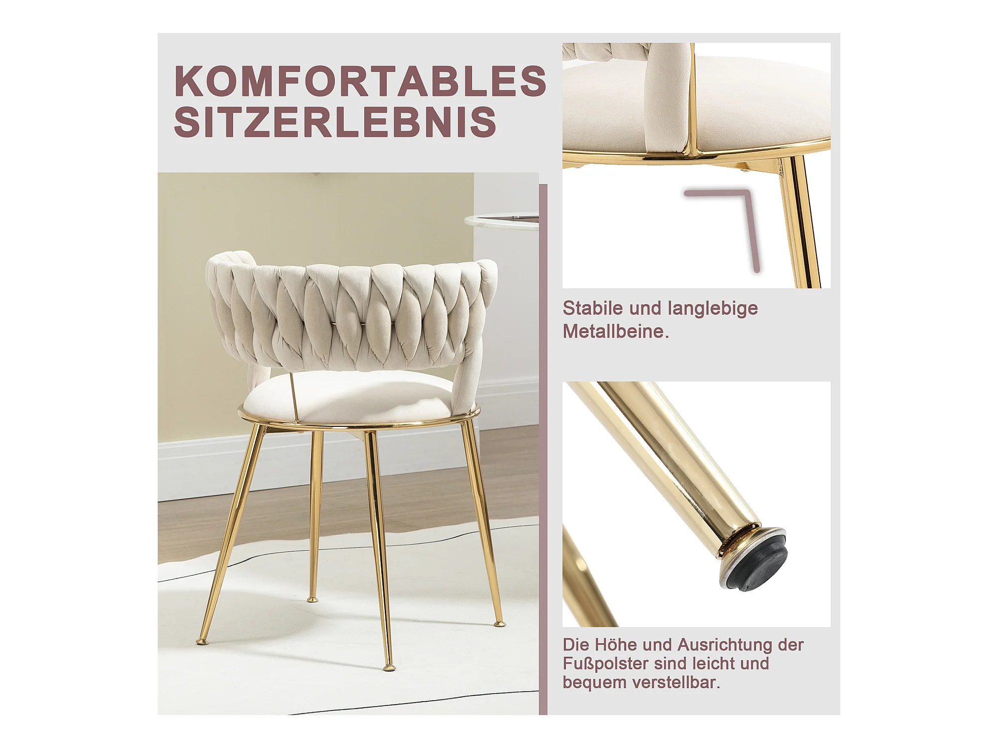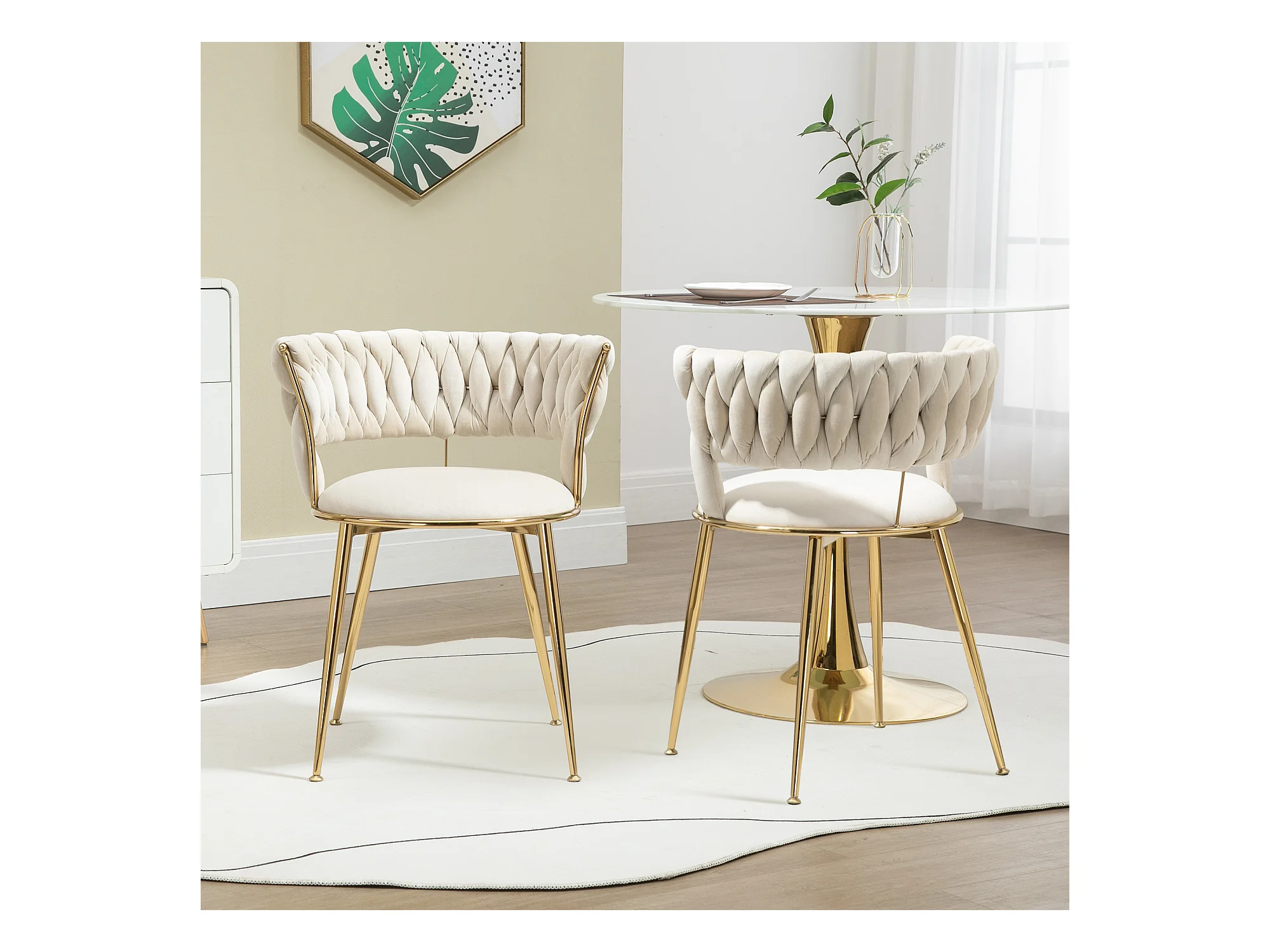 Lot de 2 chaises de salle à manger - 57 x 55 x 70 cm - pieds métal doré + coussins moelleux - velours - ivoire