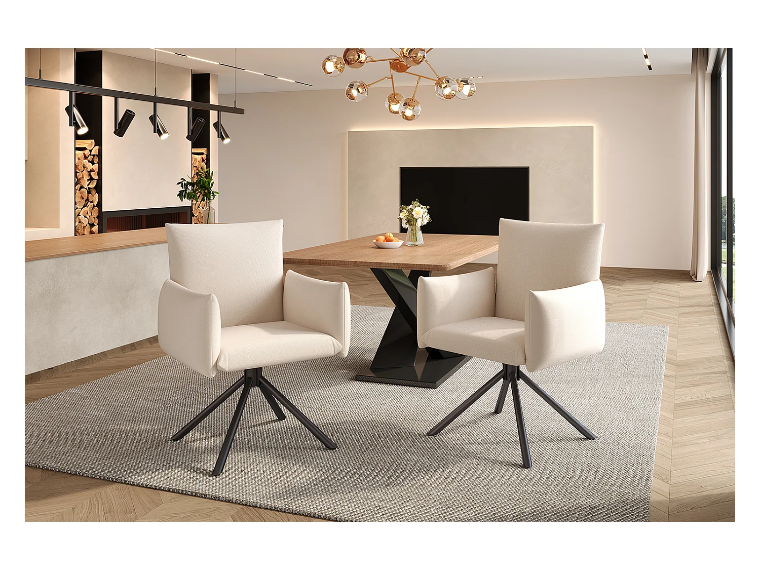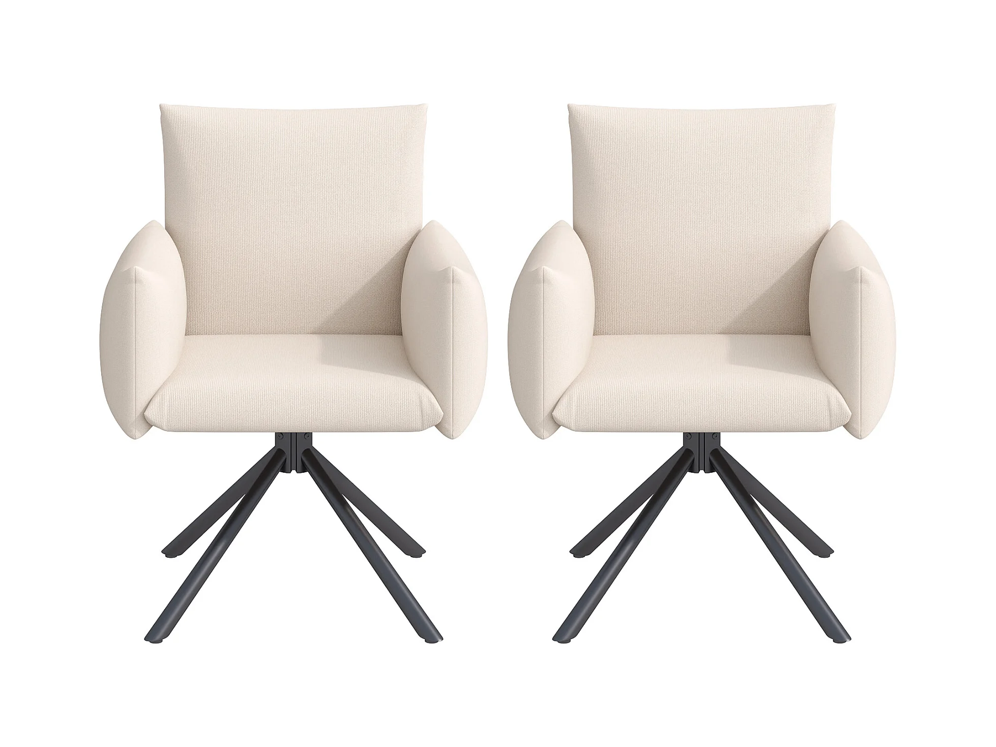 Chaise pivotante sable en tissu bouclette avec accoudoirs (lot de 2) AMSTERDAM
