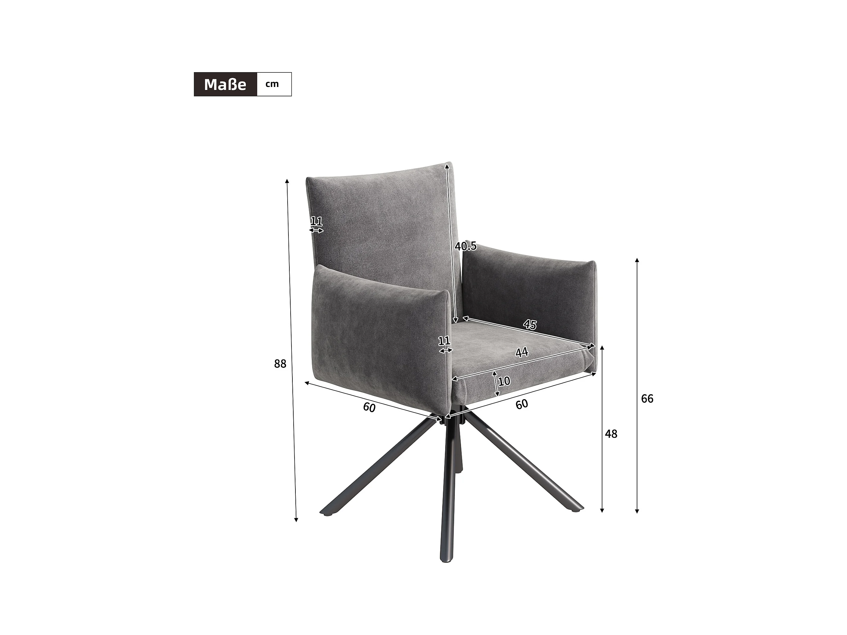 2Pcs Chaise pivotante en velours, avec accoudoirs et pieds en métal, dossier spacieux, Gris, 63x50x87cm