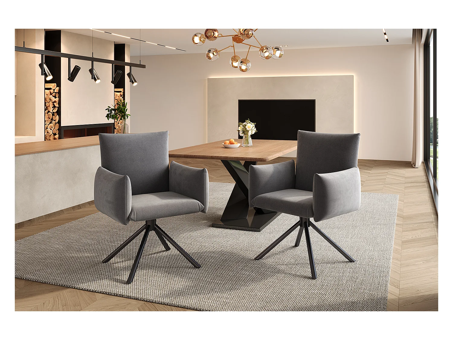 Lot de 2 chaises avec structure en métal - 56 x 50 x 70 cm - rotation à 180°- pieds noirs - velours - gris