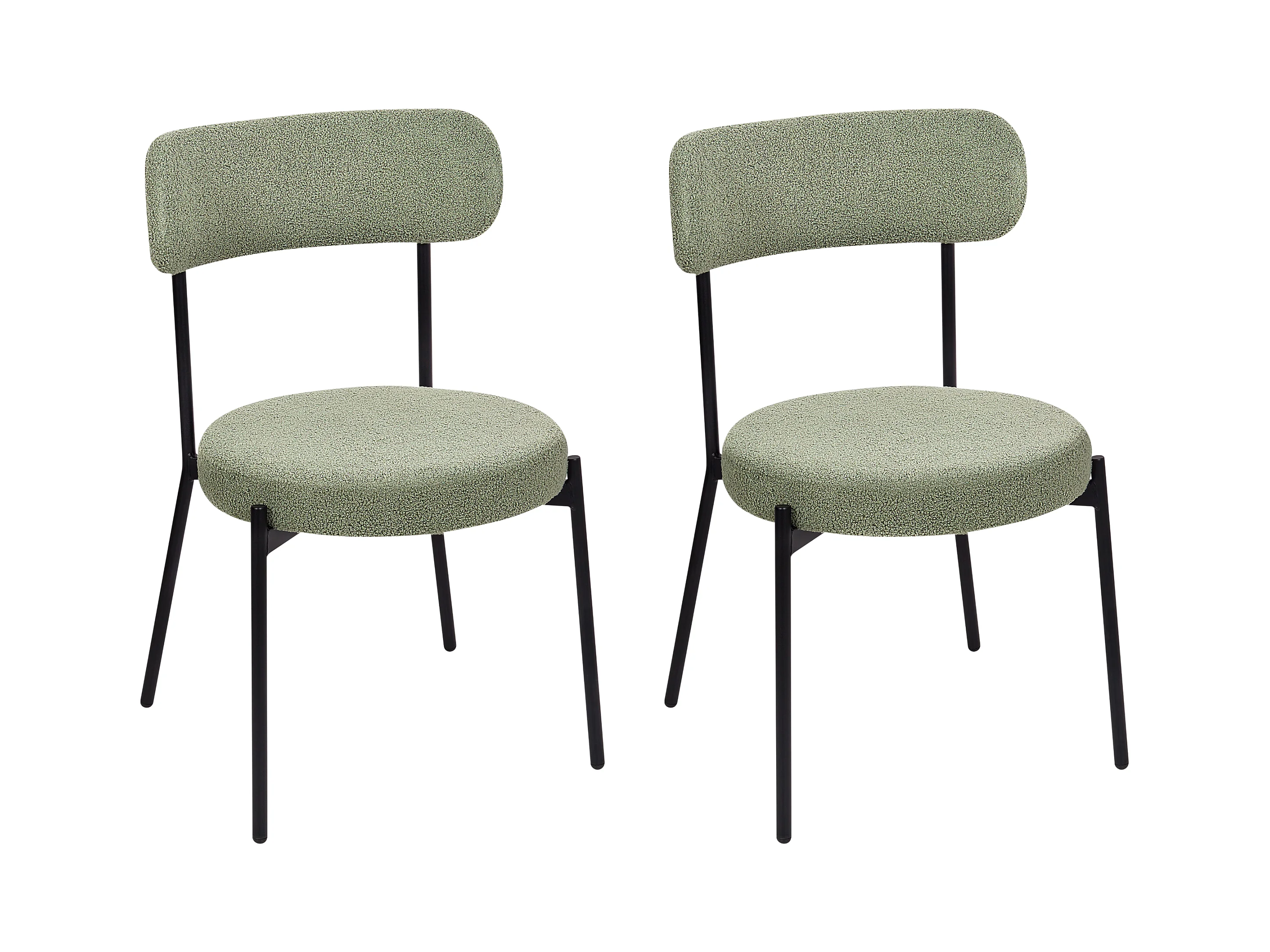 Lot de 2 chaises en tissu bouclé vert et pieds en métal noir - Iris