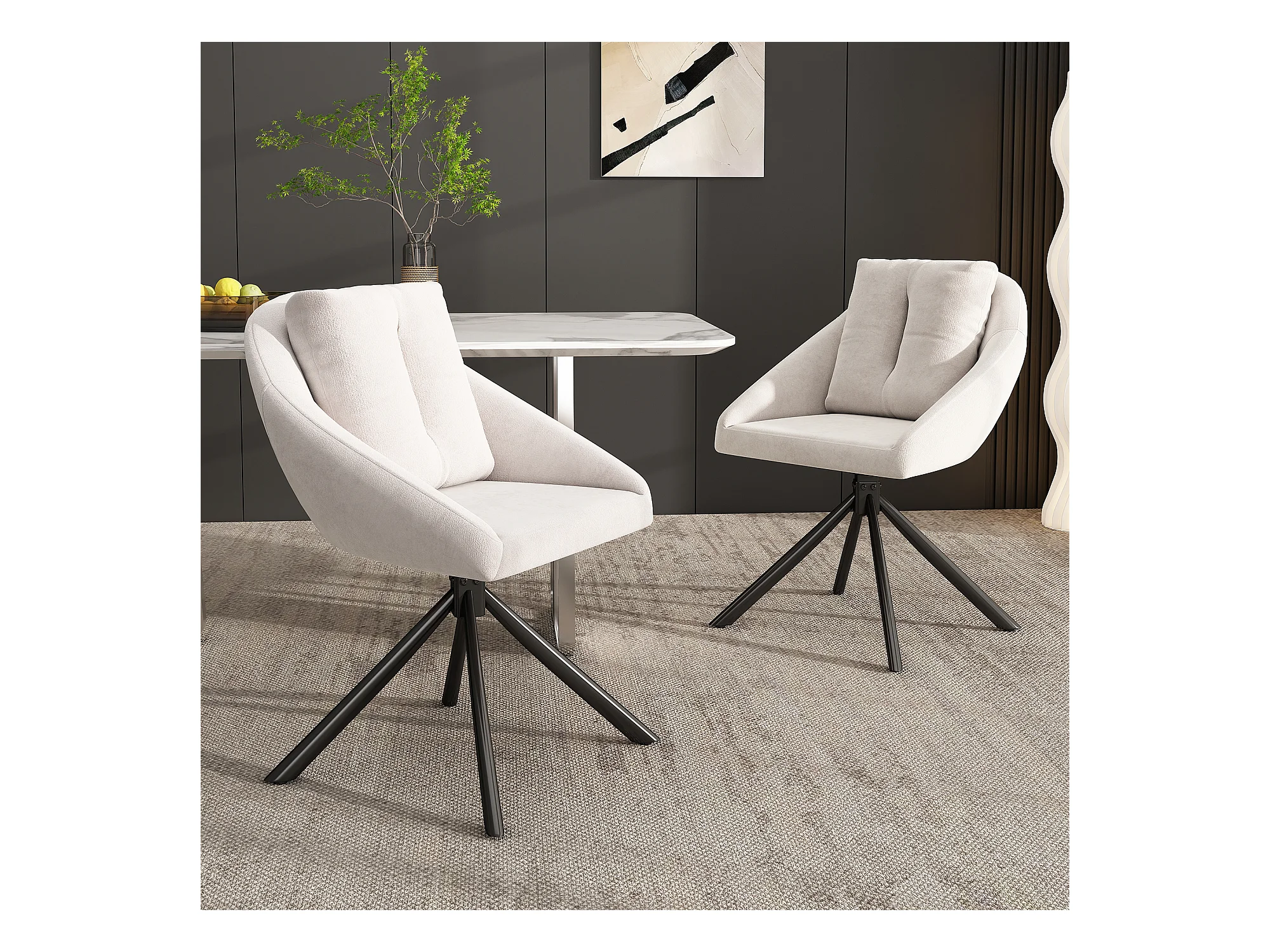 Lot de 2 chaises de salle à manger - avec dossier rembourré et fonction pivotante - velours beige