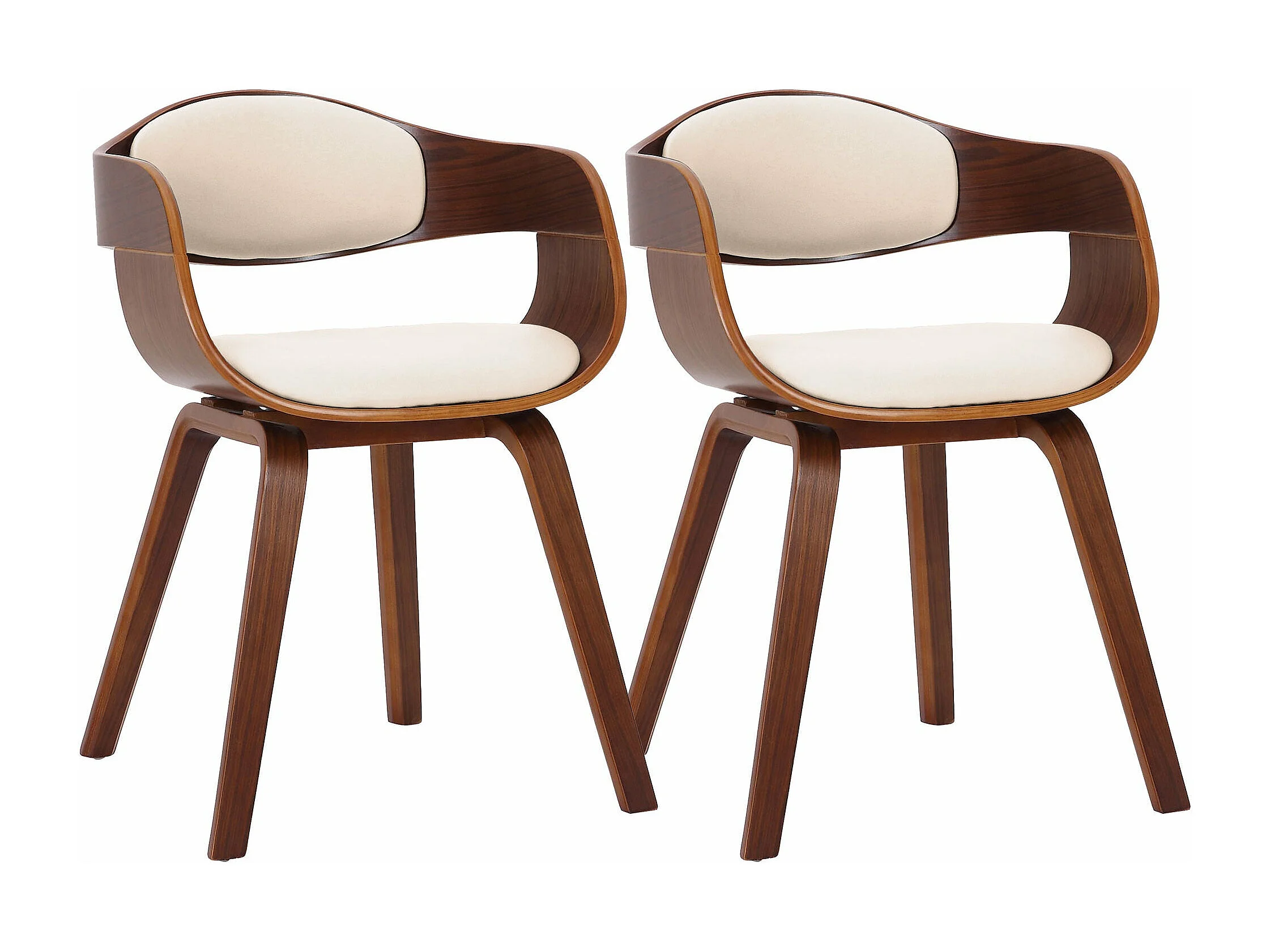 Lot de 2 chaises de salle à manger bureau design retro en PVC crème structure en bois couleur noyer 10_0001713