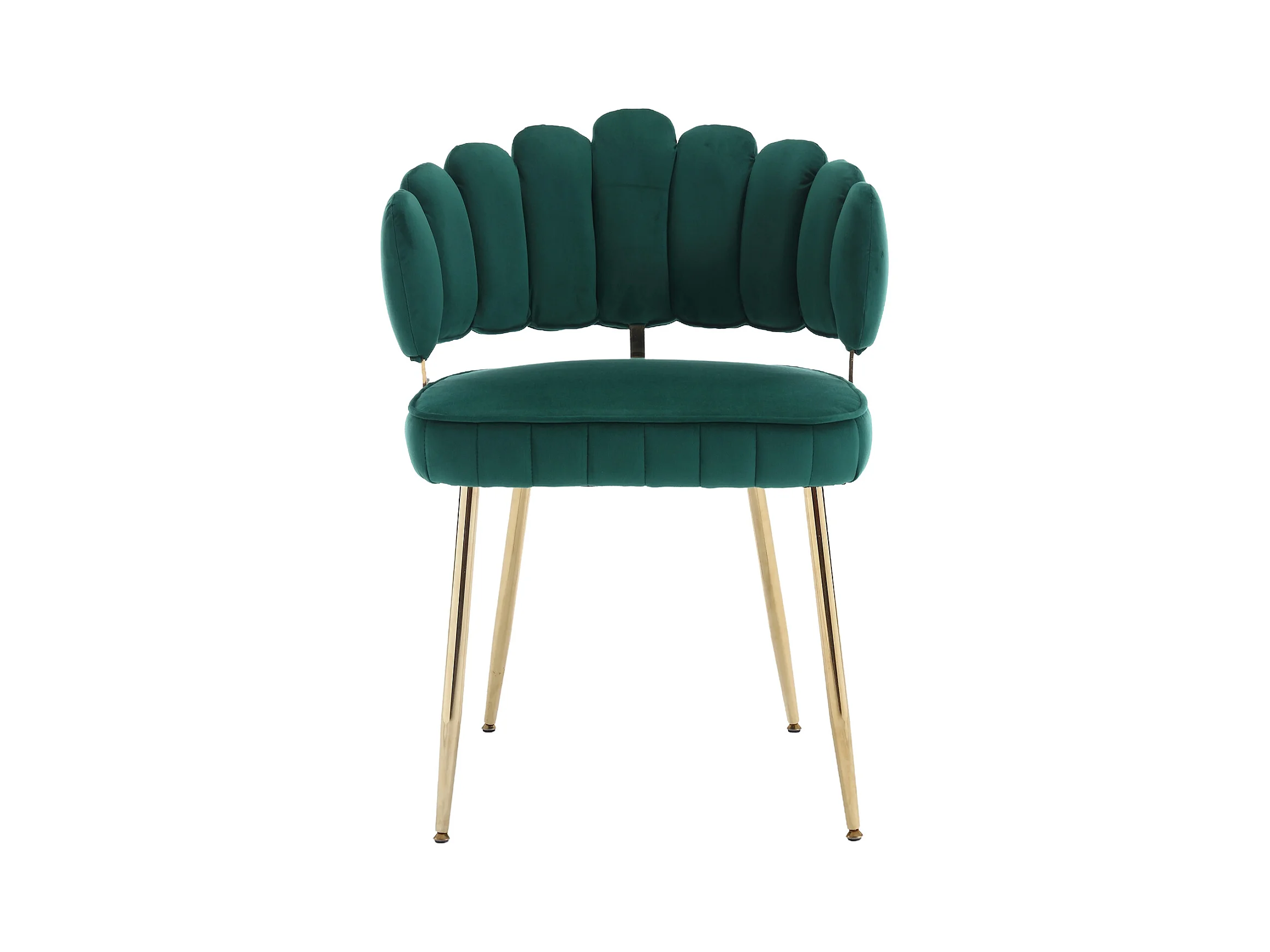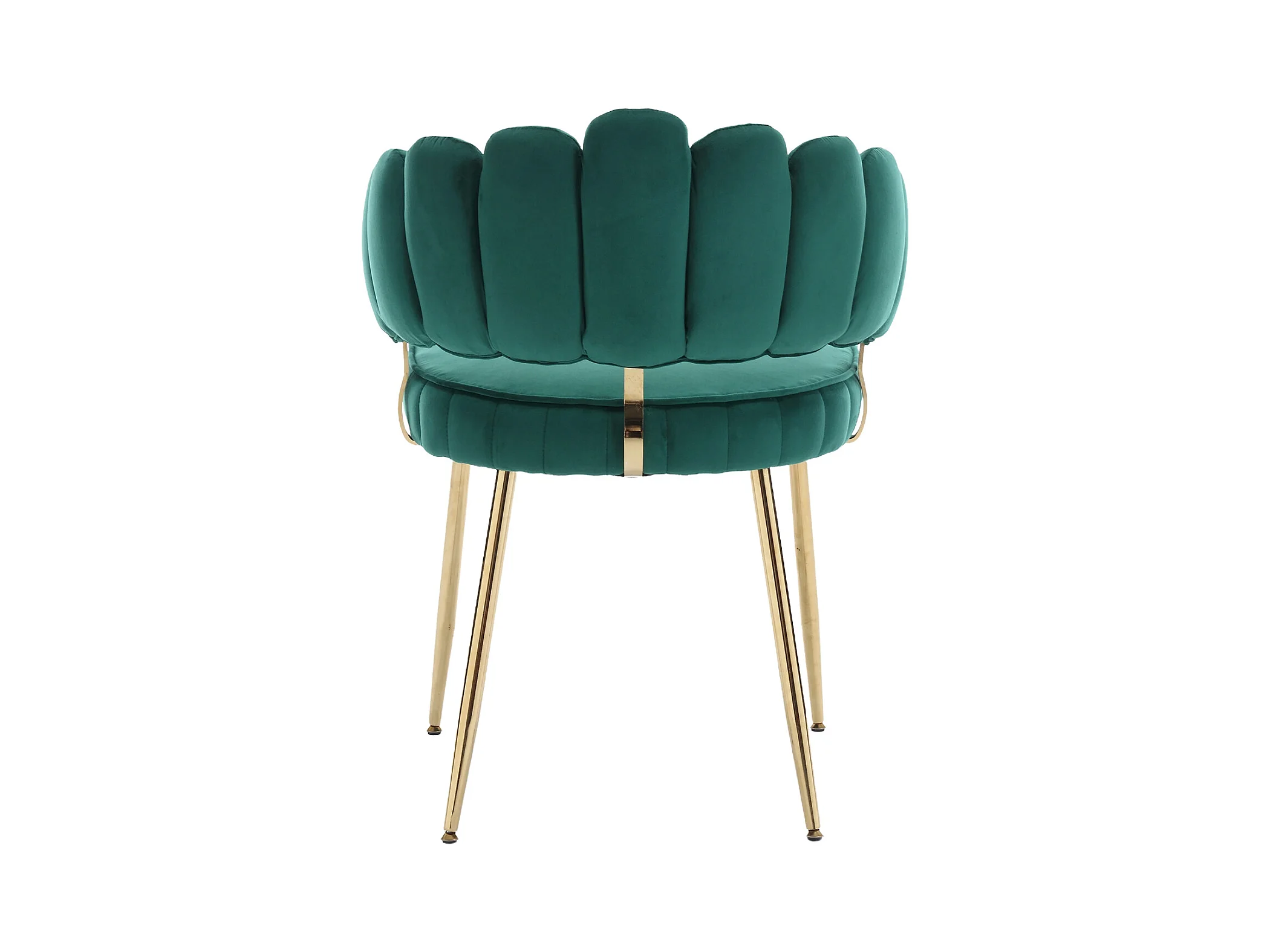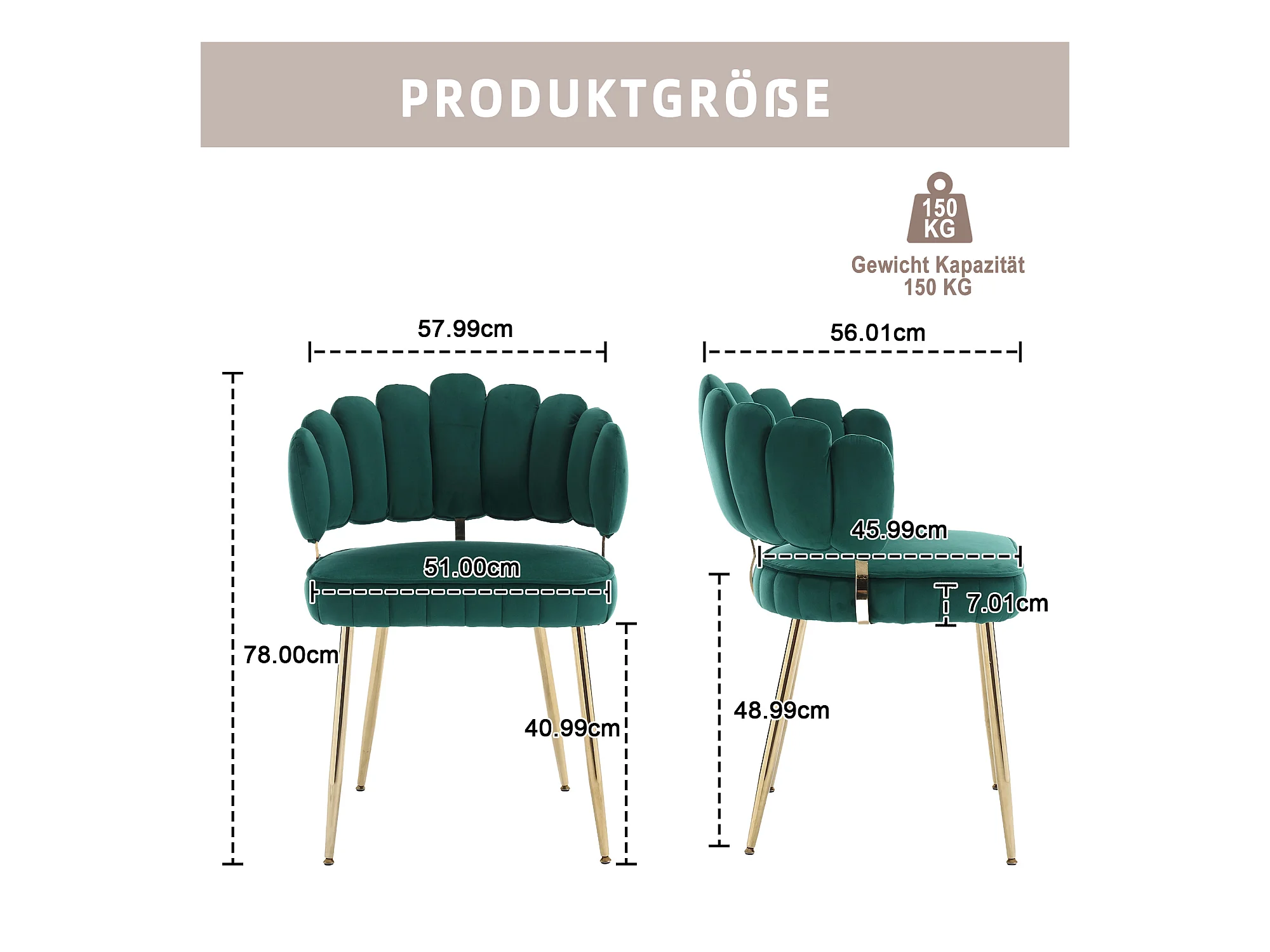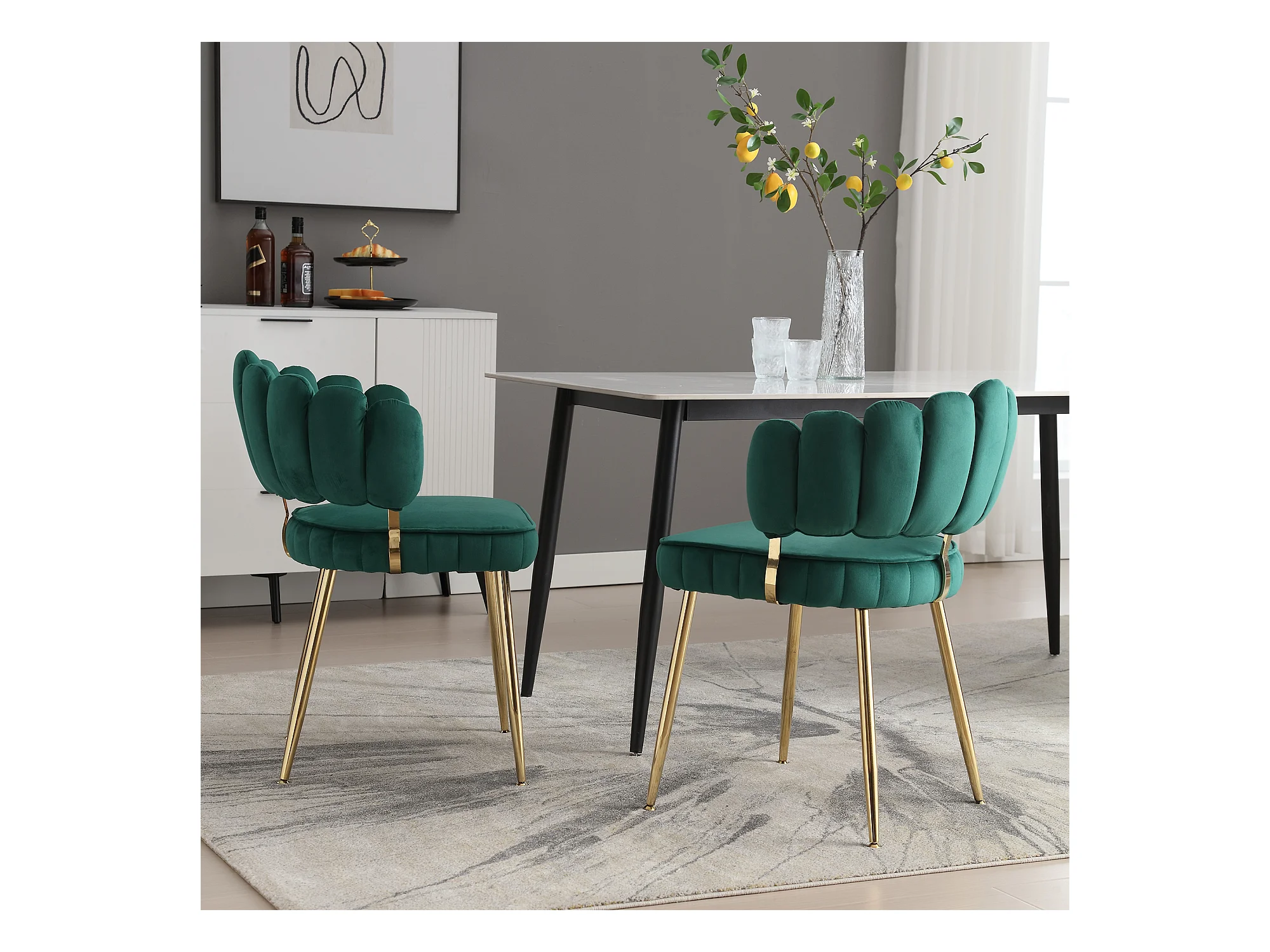 Lot de 2 chaises de salle à manger - Chaise avec accoudoirs et dossier en forme de pétale - velours vert - pour salle à manger et salon