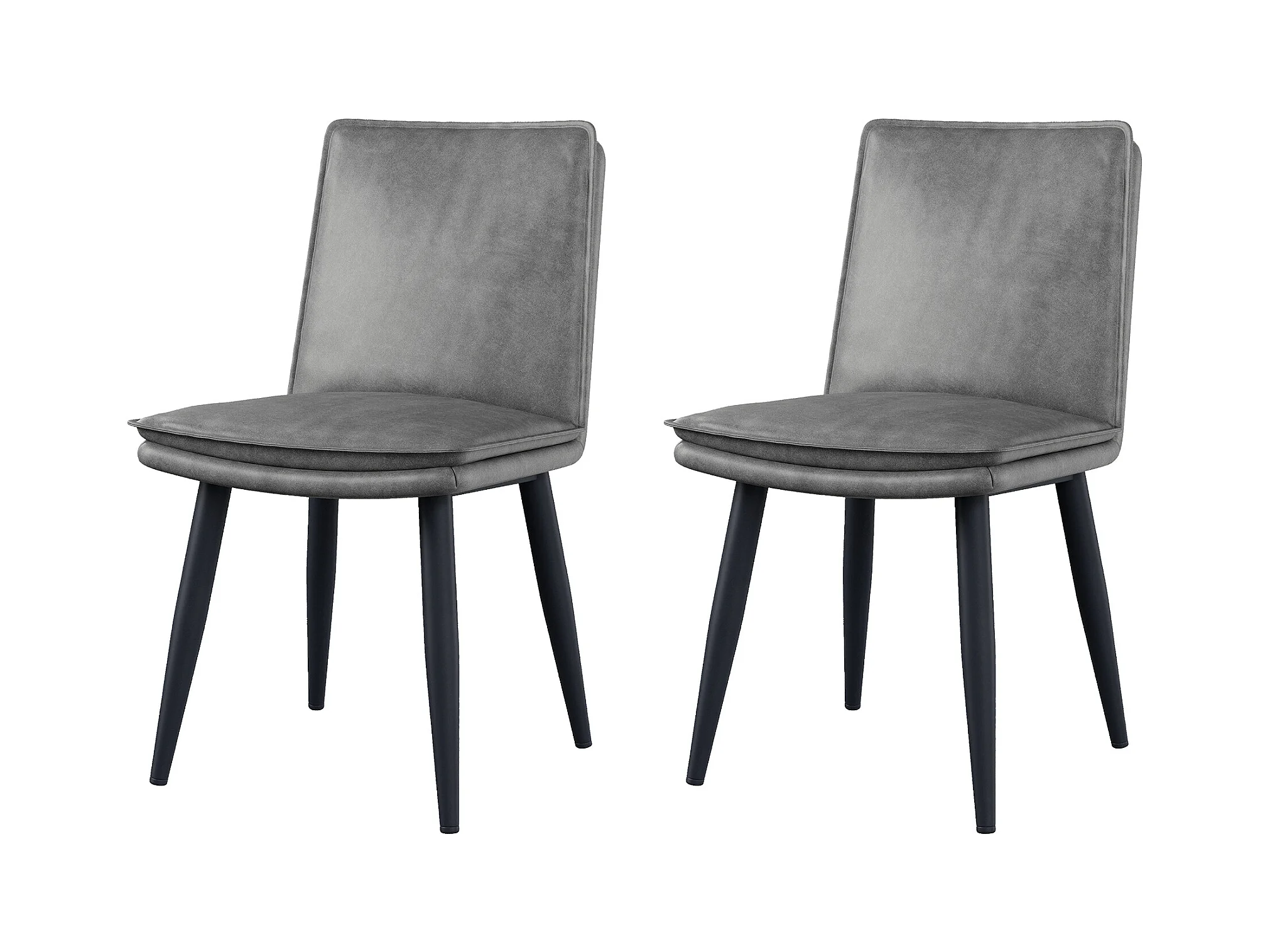 Lot de 2 chaises de salle à manger - Coussins doubles - Tissu PU - Pieds en métal - Gris