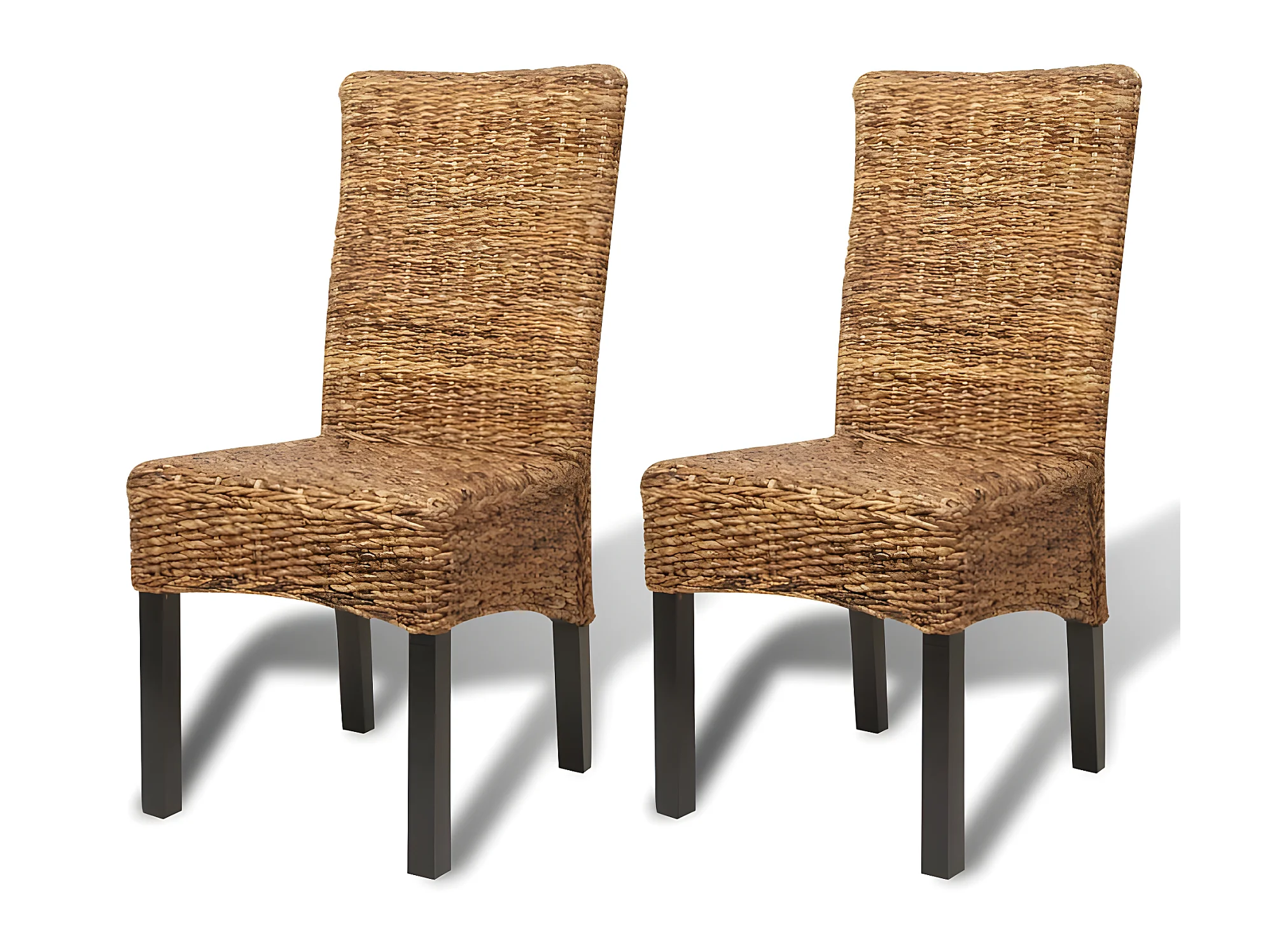Lot de 2 chaises de salle à manger cuisine design moderne bois solide de manguier et abaca CDS020292
