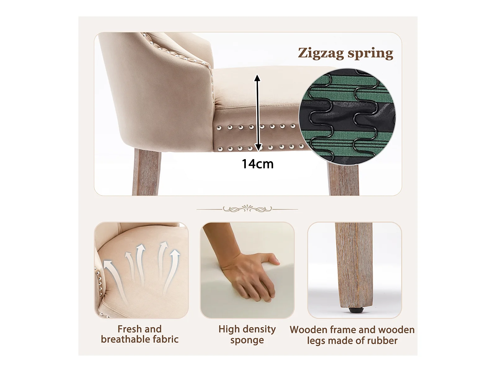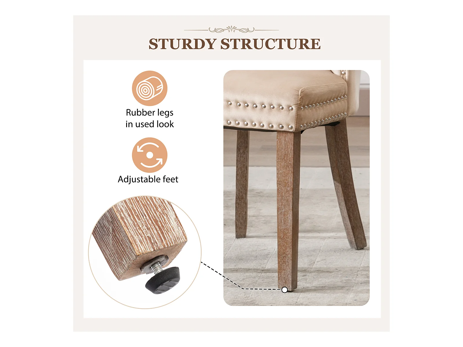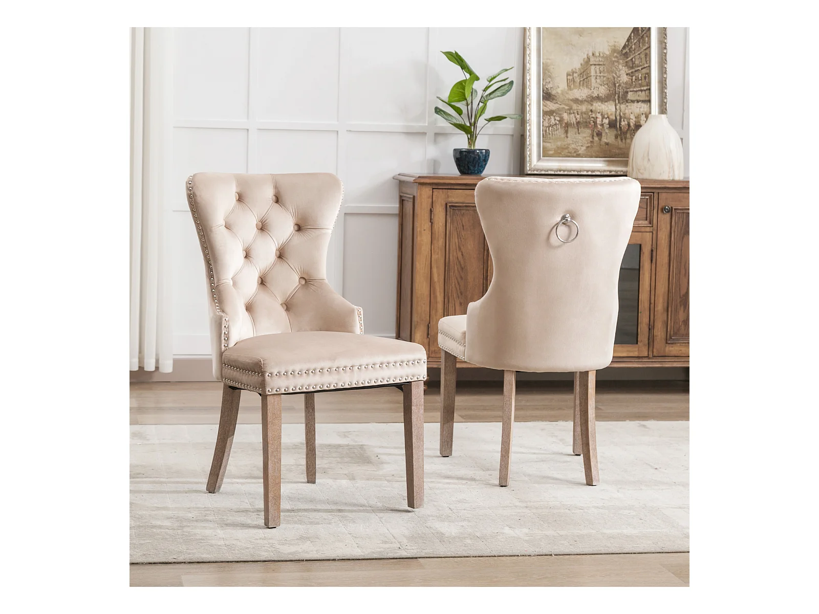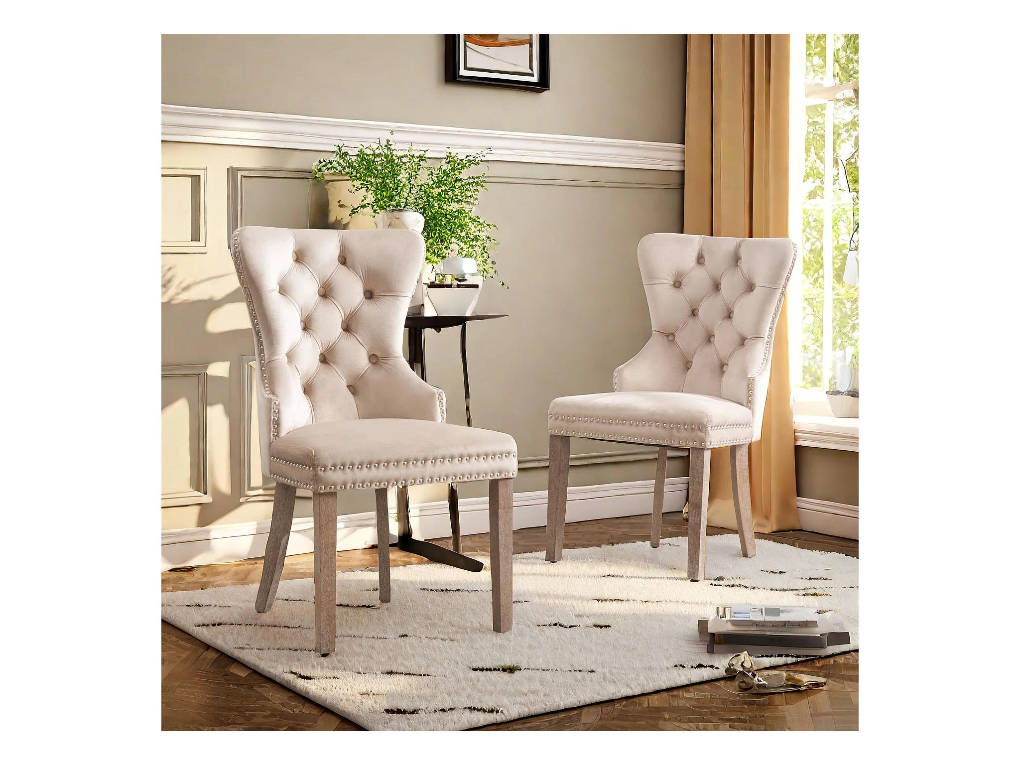 Lot de 2 Chaises de salle à manger, cuisine et salon chaise rembourrée pieds en bois massif - 53.5x64x95cm beige