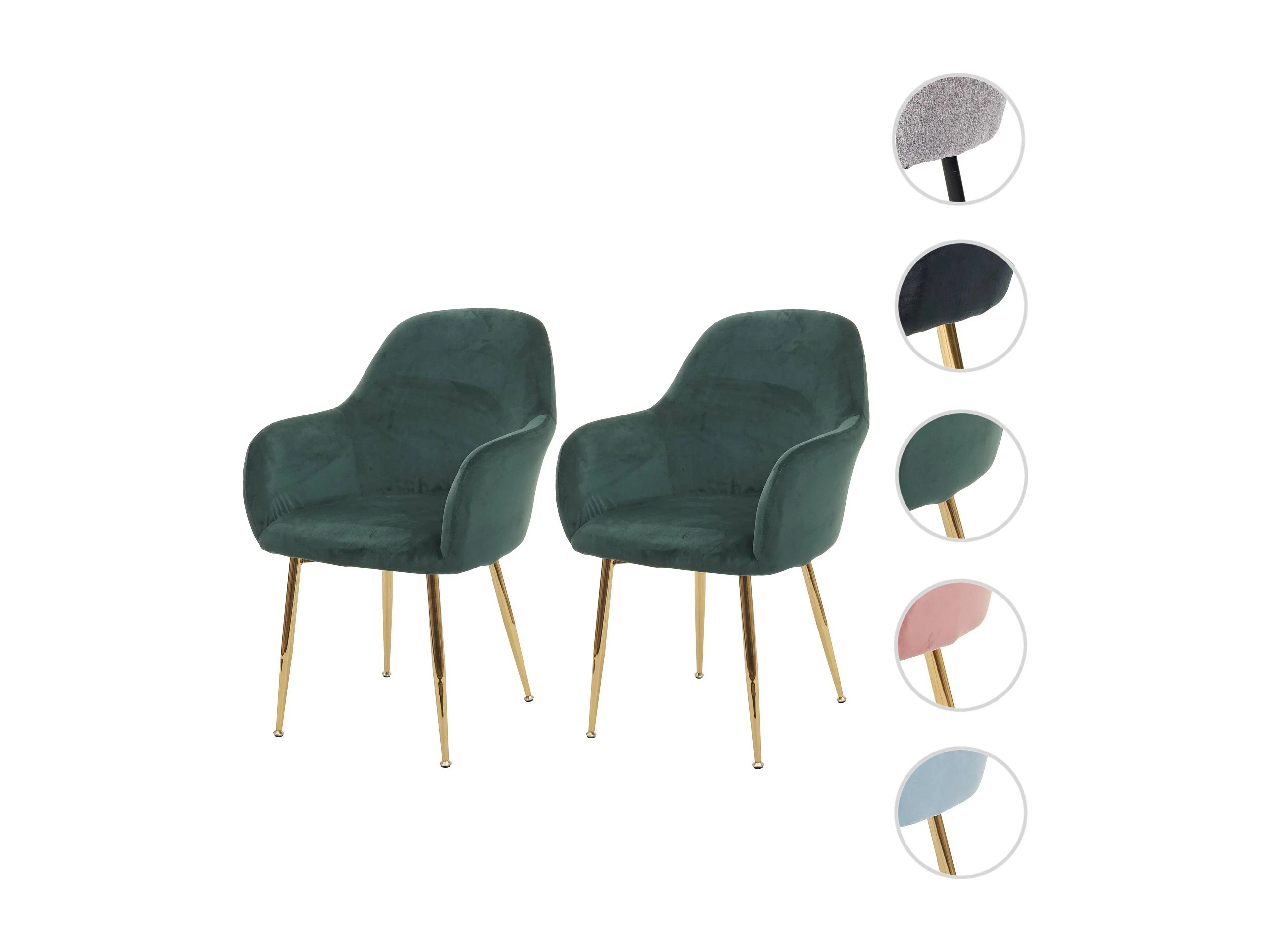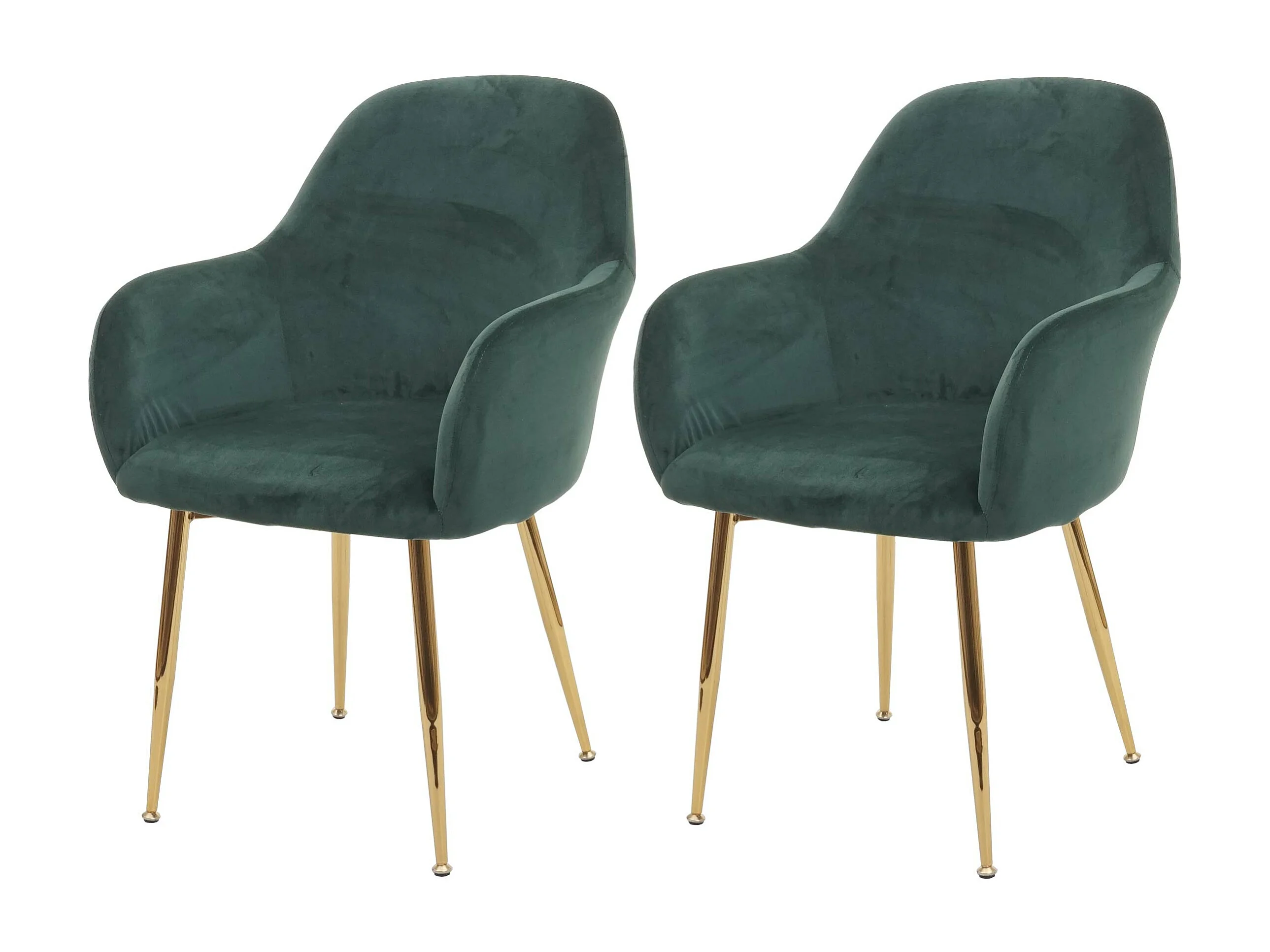 Lot de 2 chaises de salle à manger design rétro en tissu velours vert pieds métal dorés 04_0000381