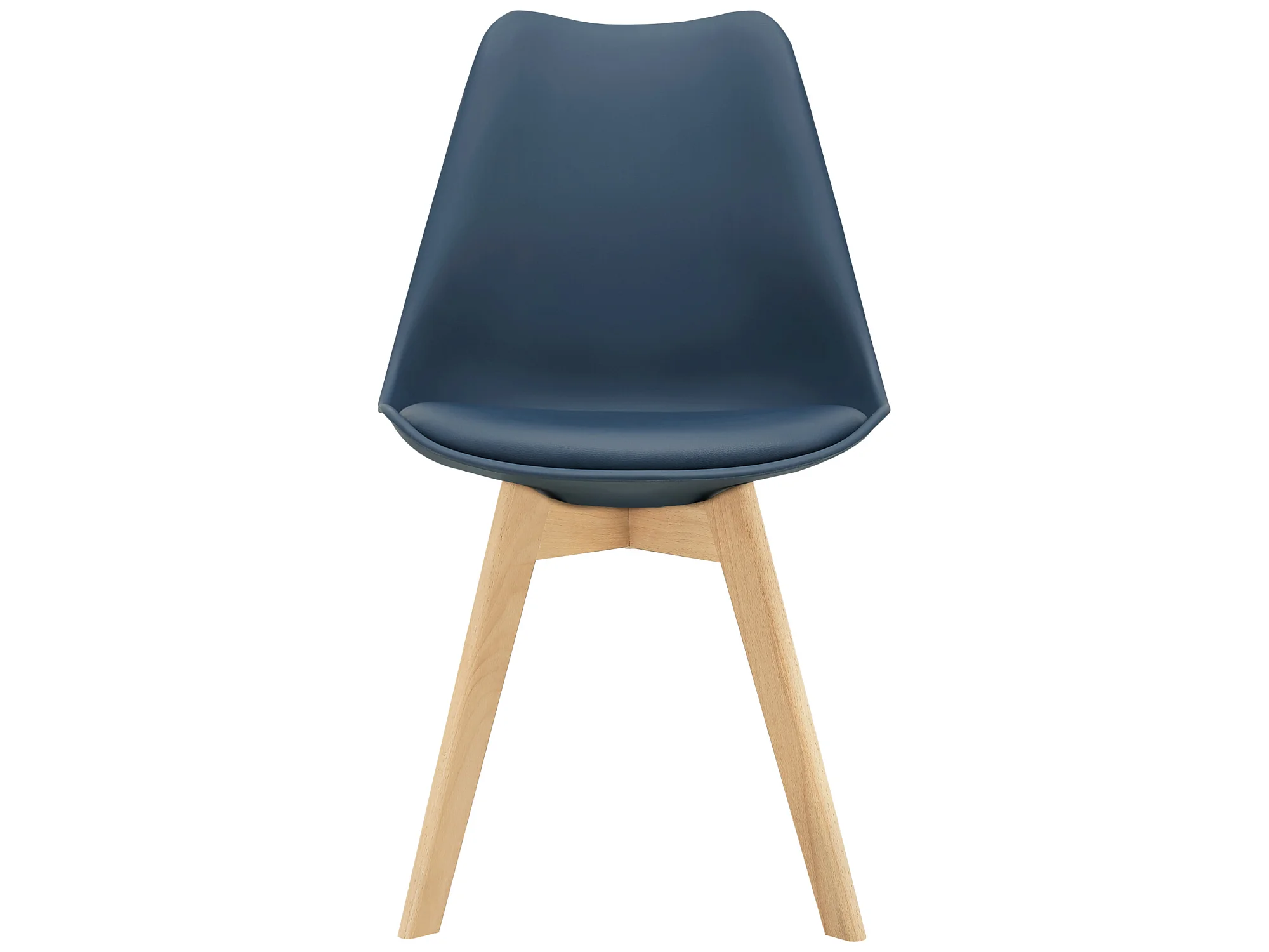 Lot 2 chaises de cuisine dossier ajouré coussin simili pieds métal ton bois clair GEOS (bleu)