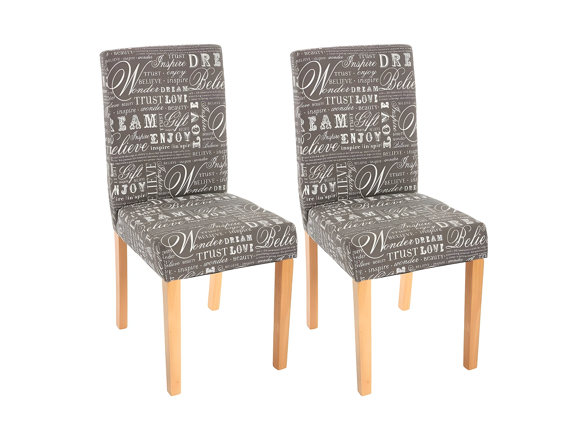 Lot de 2 chaises de salle à manger en tissu imprimé gris pieds clairs CDS04019