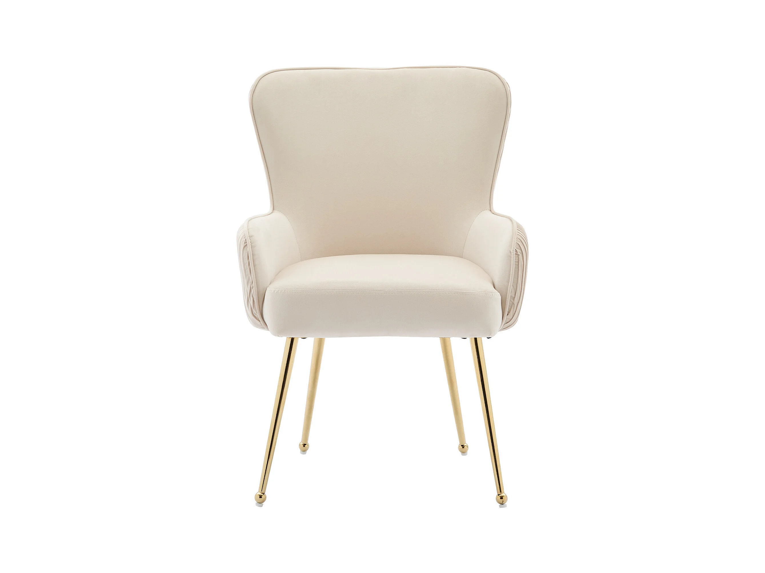 Lot de 2 chaises de salle à manger en velours - avec accoudoirs et pieds en métal doré - beige