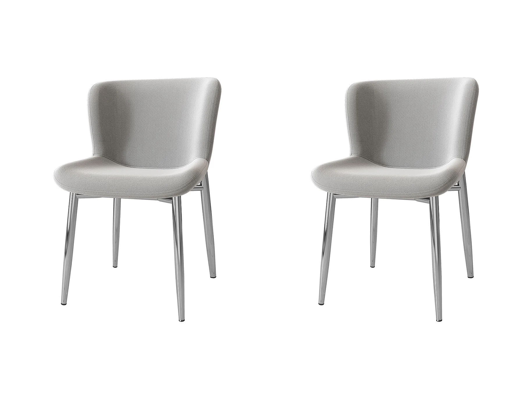 Lot de 2 chaises de salle à manger en velours gris, dossier rembourré et pieds en métal argenté