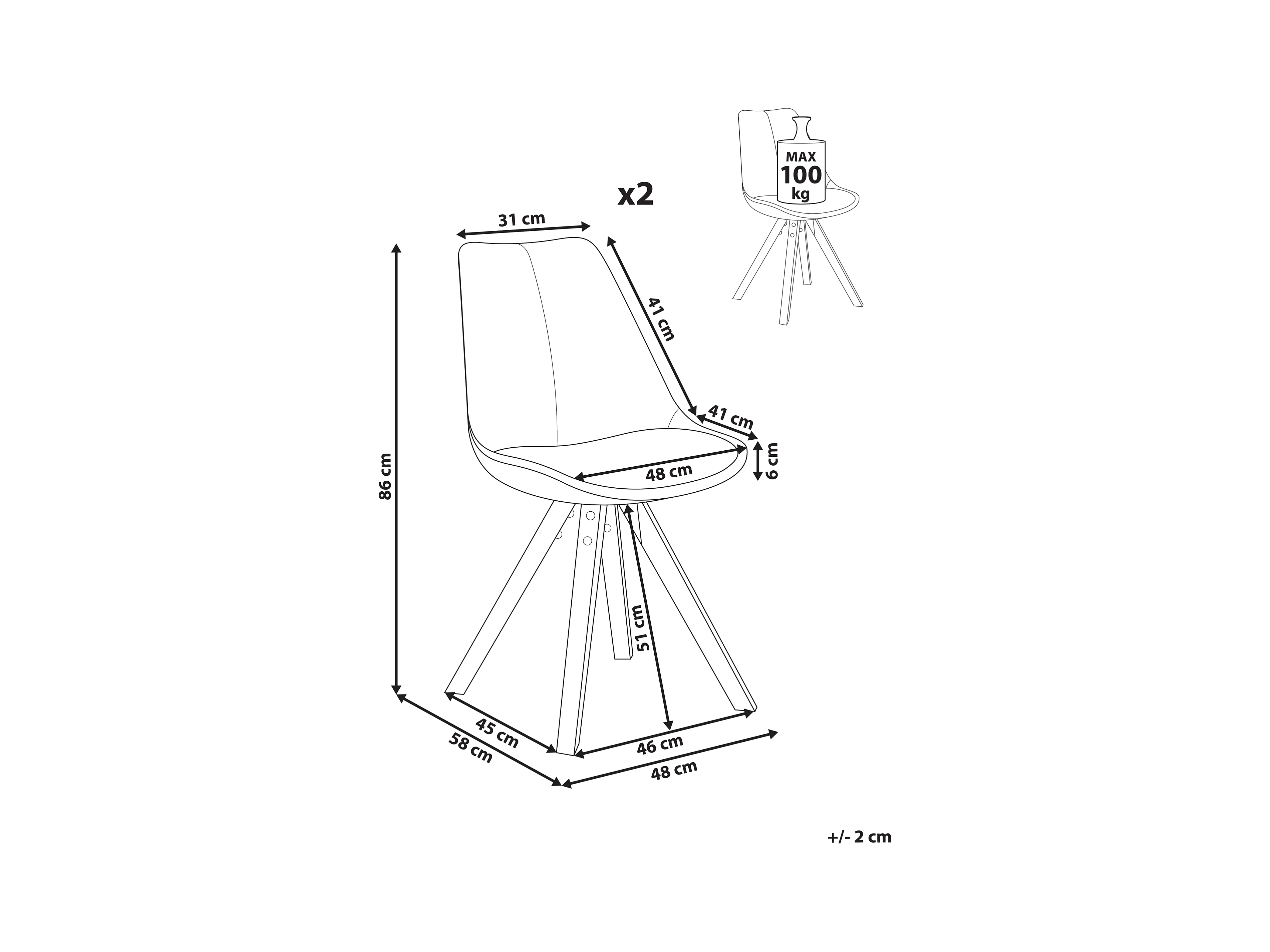 Lot de 2 chaises de salle à manger CARVER Tissu Marron clair