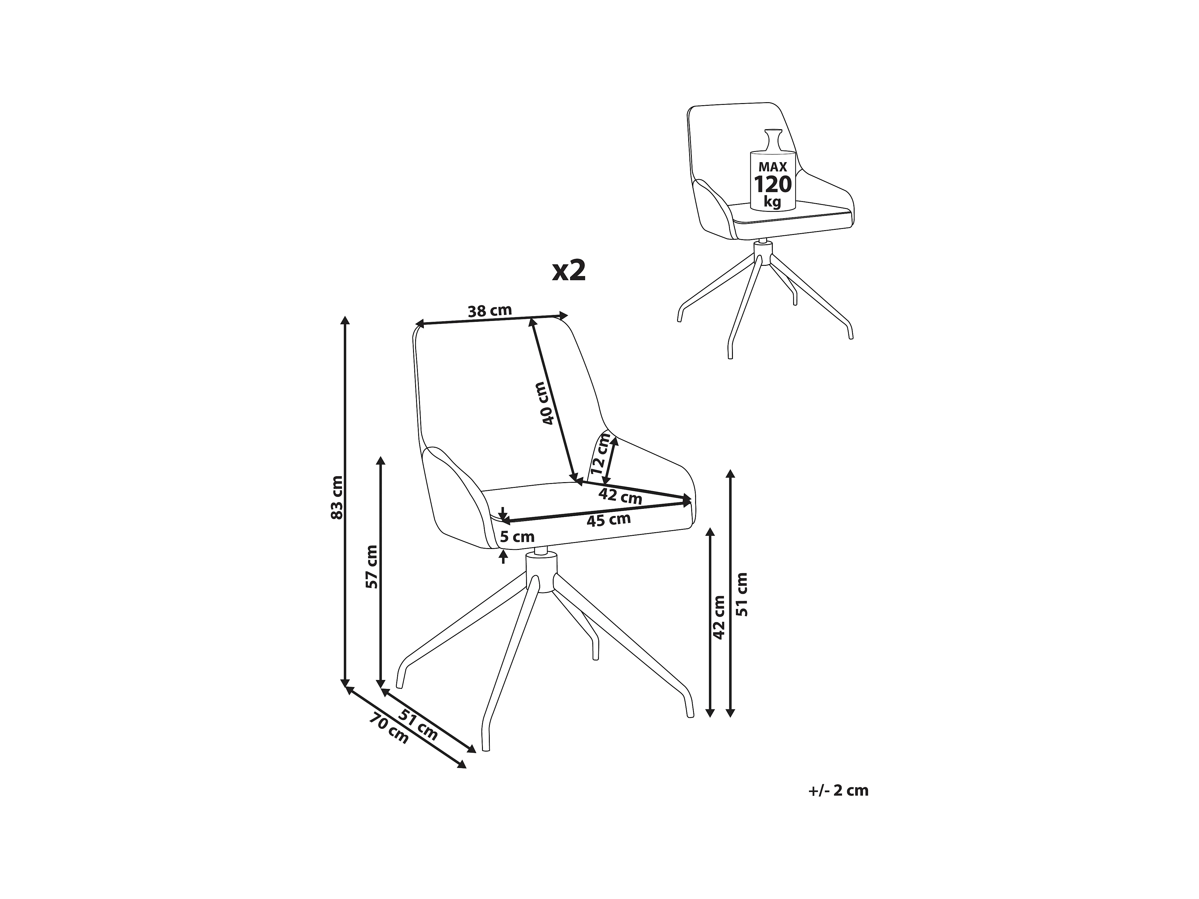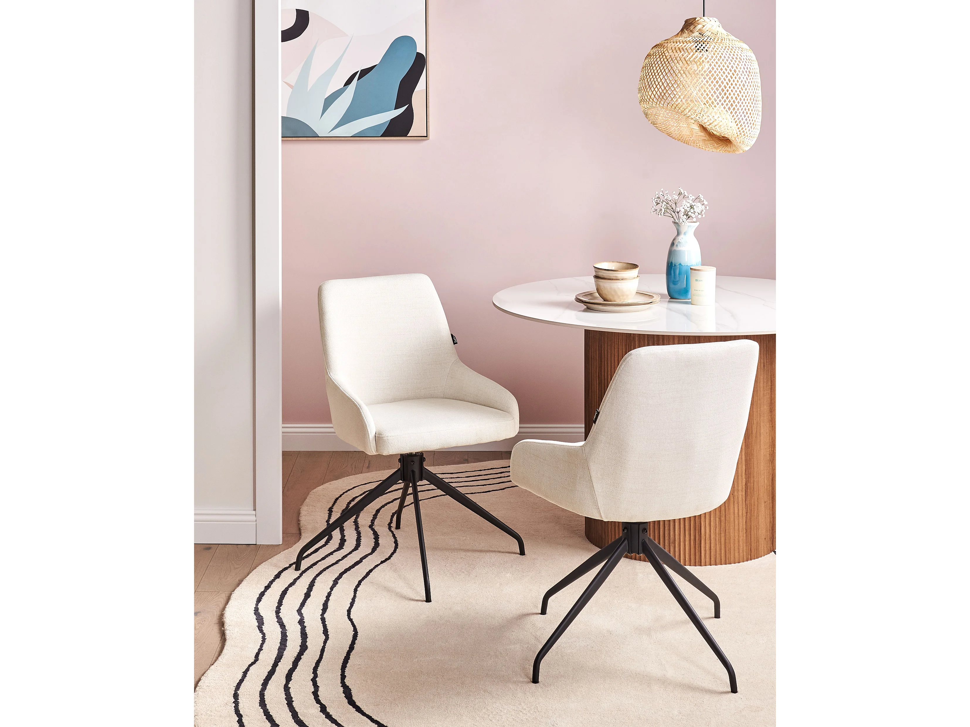 Lot de 2 chaises de salle à manger JENNER Tissu Blanc cassé