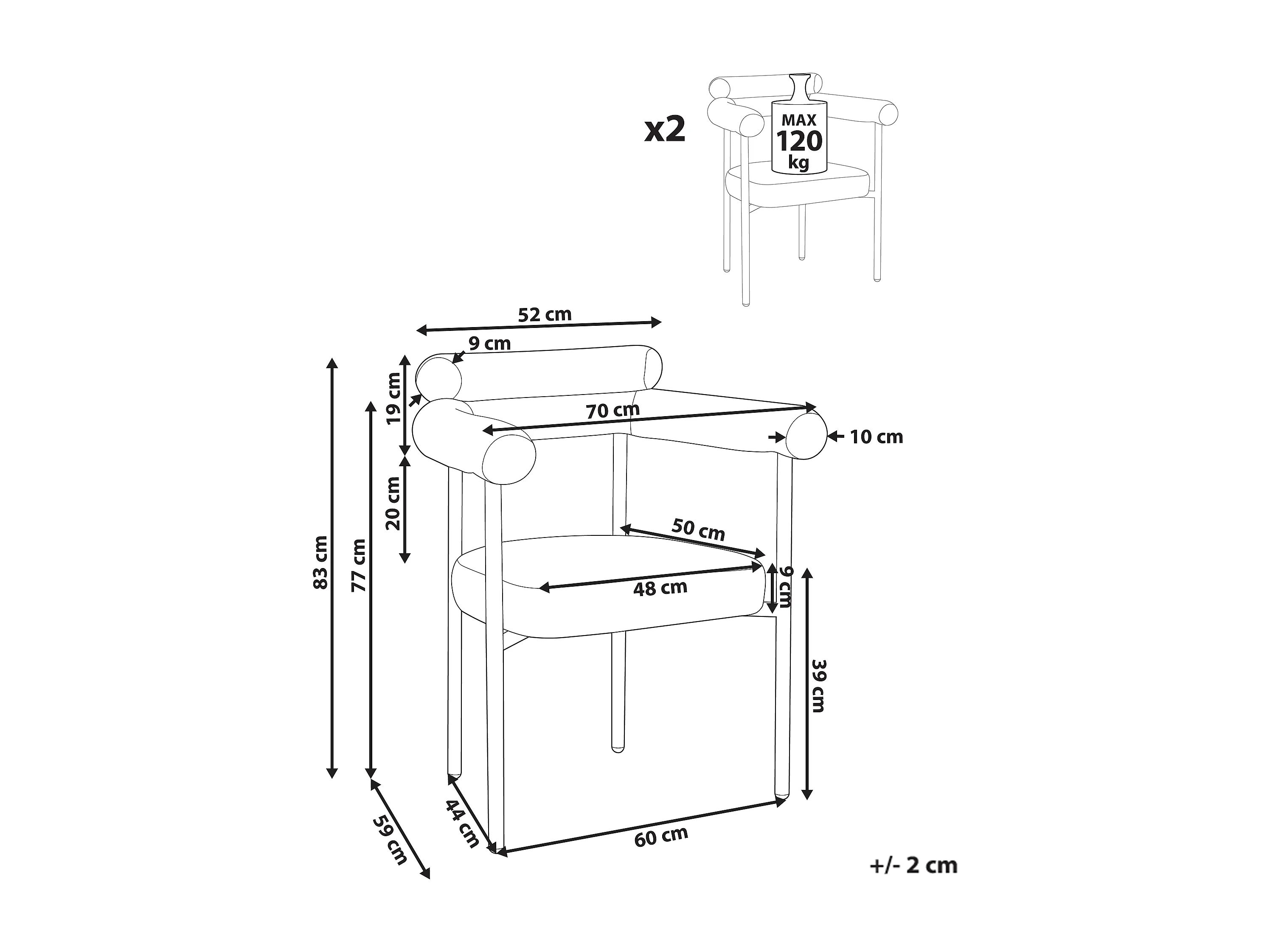 Lot de 2 chaises de salle à manger LYNEY Tissu Noir
