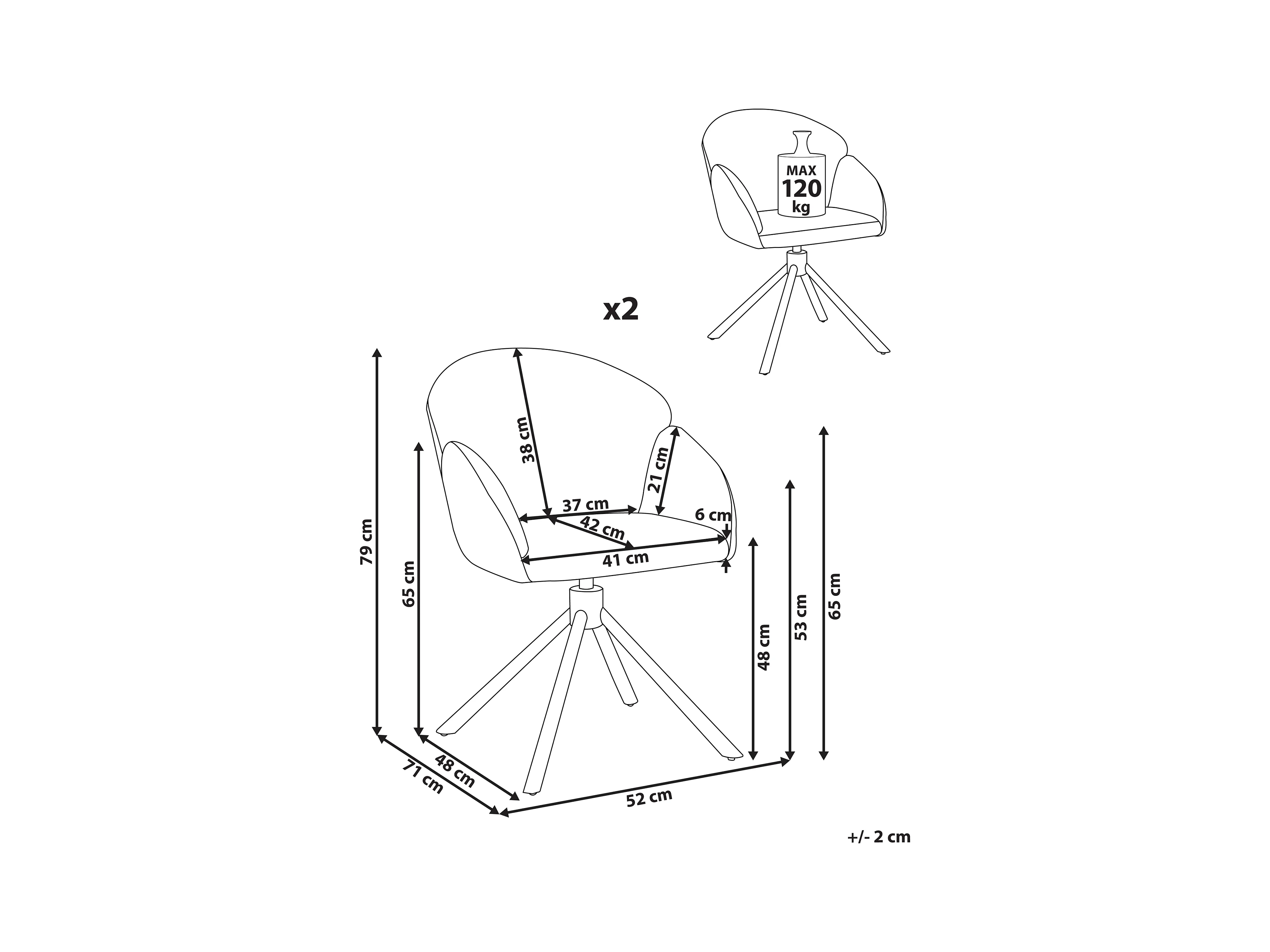 Lot de 2 chaises de salle à manger MAYBEE Tissu Blanc cassé