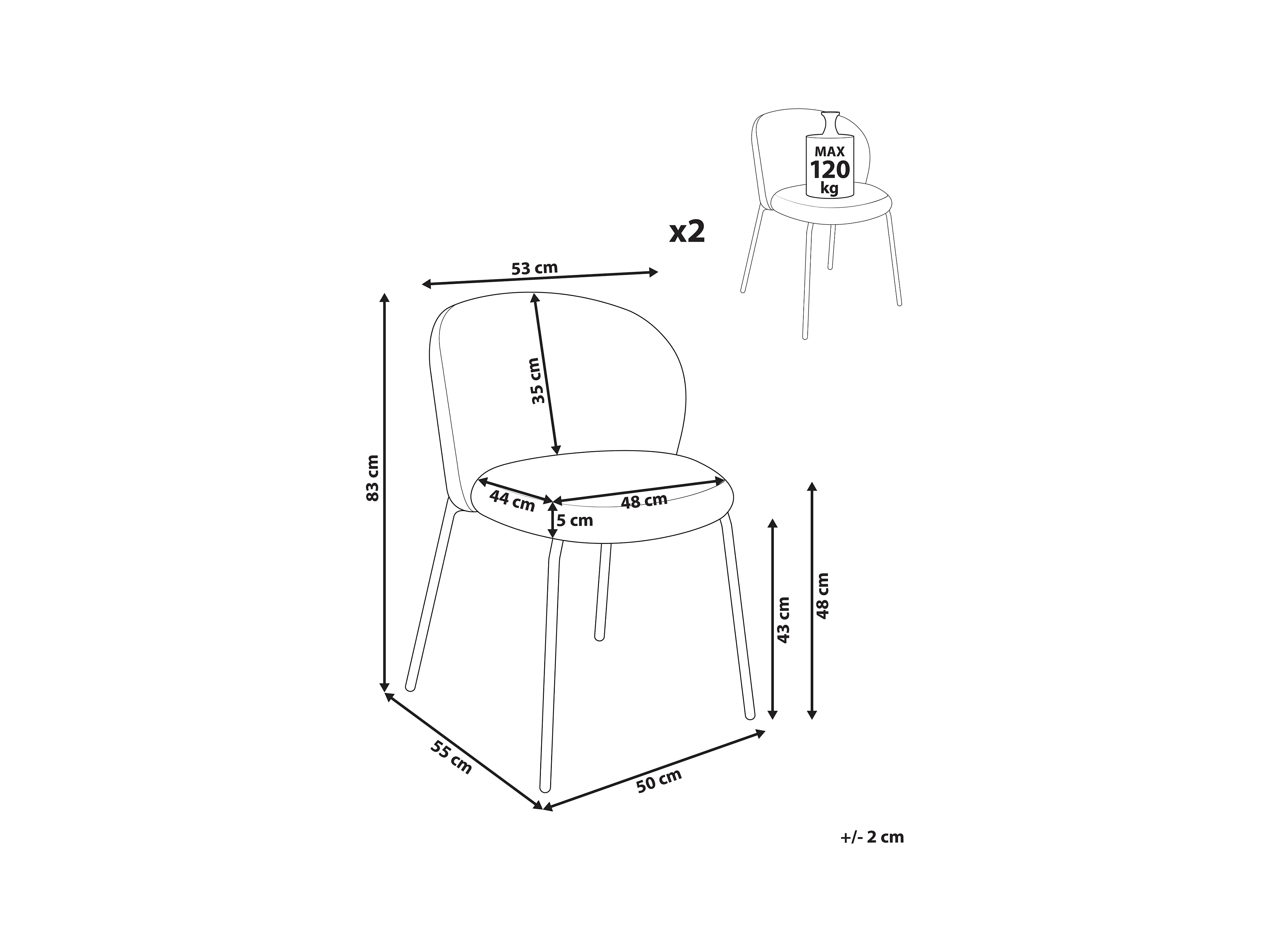 Lot de 2 chaises de salle à manger MILES Velours côtelé Orange